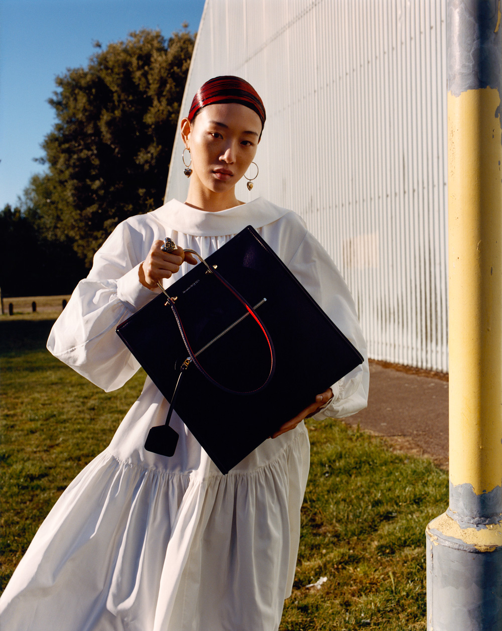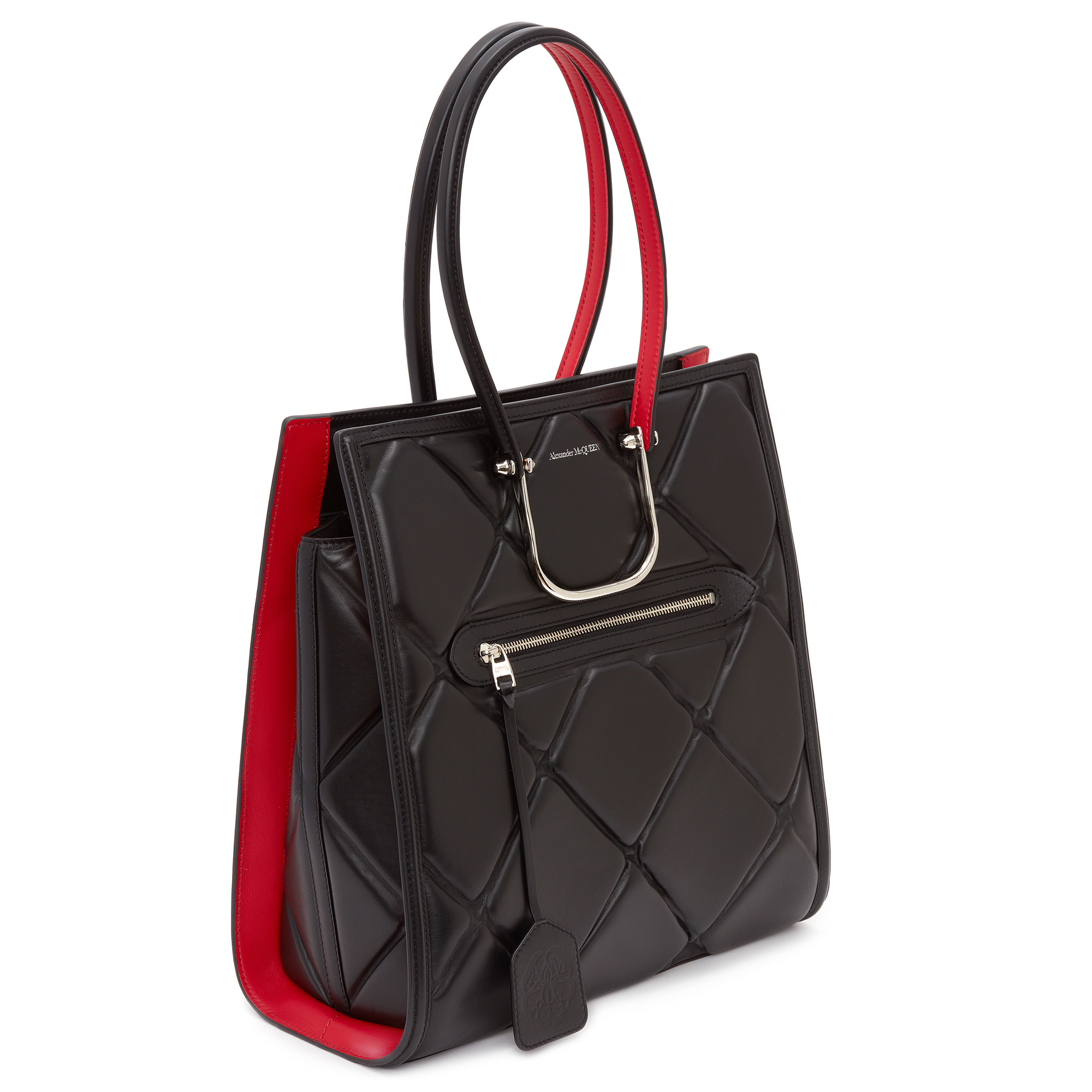 Story Bag ailesinin uzun kardeşi Alexander McQueen Tall Story, markanın Sonbahar / Kış 2020 defilesinin kod ve renklerinden ilham alıyor. Heykelsi formuyla ilk andan itibaren tüm bakışları üzerine toplayan Alexander McQueen Tall Story, kontrast renkli astar seçeneği ve deri etiket üzerindeki mühür detayı ile zenginleşiyor. Geniş tasarımıyla laptop dahil tüm temel ihtiyaçları rahatça taşıma imkânı sunan çantanın, telefon ya da kredi kartlarına kolay ulaşım için fermuarlı fonksiyonel bir ön cebi bulunuyor.