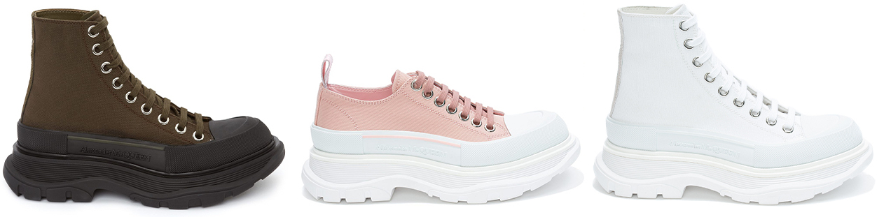 Tırtıklı tabanlı botların öncüleri arasında yer alan Alexander McQueen, İlkbahar Yaz 2020 sezonu için ‘Tread Slicks’ ayakkabı ı modelini güncelledi. McQueen’in Kış defilesinde görülen bu ayakkabı modeli, favoriler arasında yer almıştı. ‘Utility’ trendinden ilham alan bu botlar, yaz ayları için daha hafif kumaşlar ile güncellendi. Ayaklarınıza yaz havasını getiren yeni Tread Slicks botları ve sneakerları kanvas kumaşlar ile tasarlandı. Bağcıklı ve kauçuk tabanlı bu ayakkabıları yeni sezonun kargo pantolon trendi ile denemelisiniz!