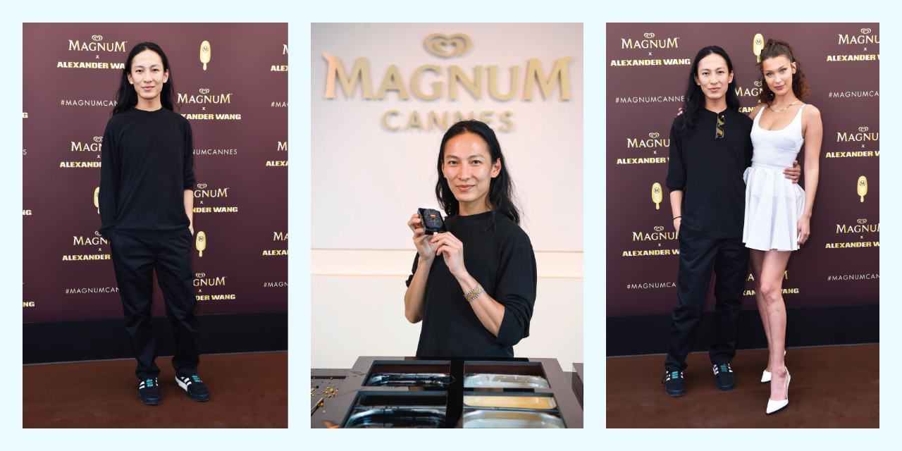 Bella ve Alexander Wang, Cannes’ın ünlü sahilinde. Tarihi Carlton otelindeki odamda bekleyen davetiyem tabii ki siyahtı. Wang’le buluşmama 10 dakika kala. Böylece şunu da öğrenmiş oldum, Cannes’daki doğal ışık iyi selfie veriyor. La Croisette Caddesi’nde yürürken, karşınıza bu bronz melek heykeli çıkıyor. Magnum için çok şık bir soğutucu çanta tasarlayan Wang, gün siyah çikolatalı bir Magnum tasarladı. Tadı muhteşemdi. Nereden mi biliyorum? Bu soruyu yok sayıyorum…