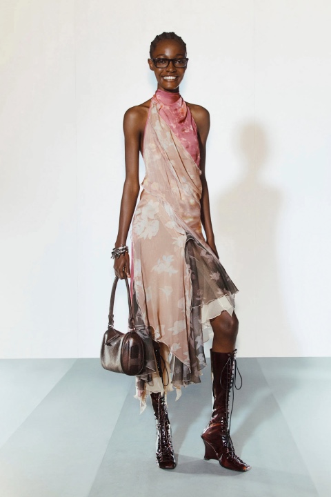 Bu sezon Martens, Diesel’in yıllardır tanımladığı asi tavrı yeni bir incelikle harmanlıyor. Daha uzun etek boyları ve daha kapalı siluetlerle sunulan koleksiyon, “büyümek” fikrini Diesel’in özgün mizahından ve deneysel ruhundan ödün vermeden yorumluyor.
