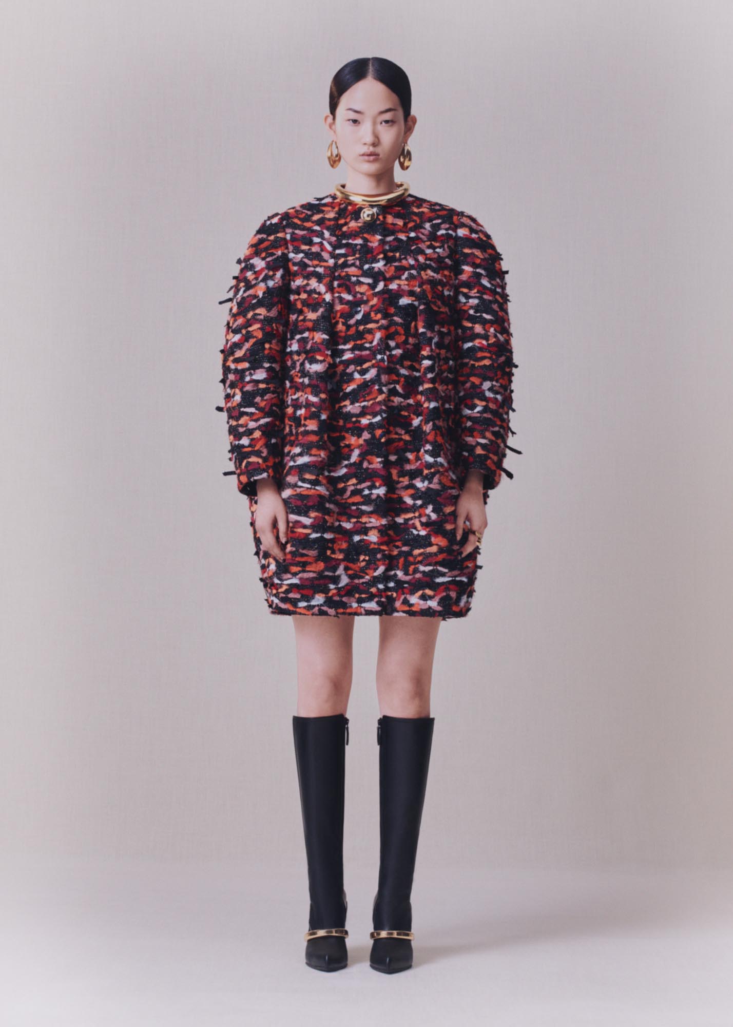 Koleksiyonda; yeraltının gizli hazinelerinden esinlenen altın, gümüş ve bakır tonlarındaki dikiş detayları; heykelsi tasarımlar, markanın imzasıyla kontrast oluşturan ham ve rafine, aydınlık ve karanlık gibi tezat birliktelikler dikkat çekiyor.