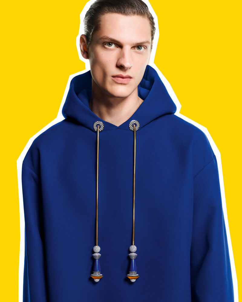 Mücevherin güzelliğini, herhangi bir kısıtlama olmadan sofistike bir umursamazlıkla herhangi bir giysiye giyilmek üzere uyarlanabilen bir cebe taşımak tam da lüks markadan beklenen adım…