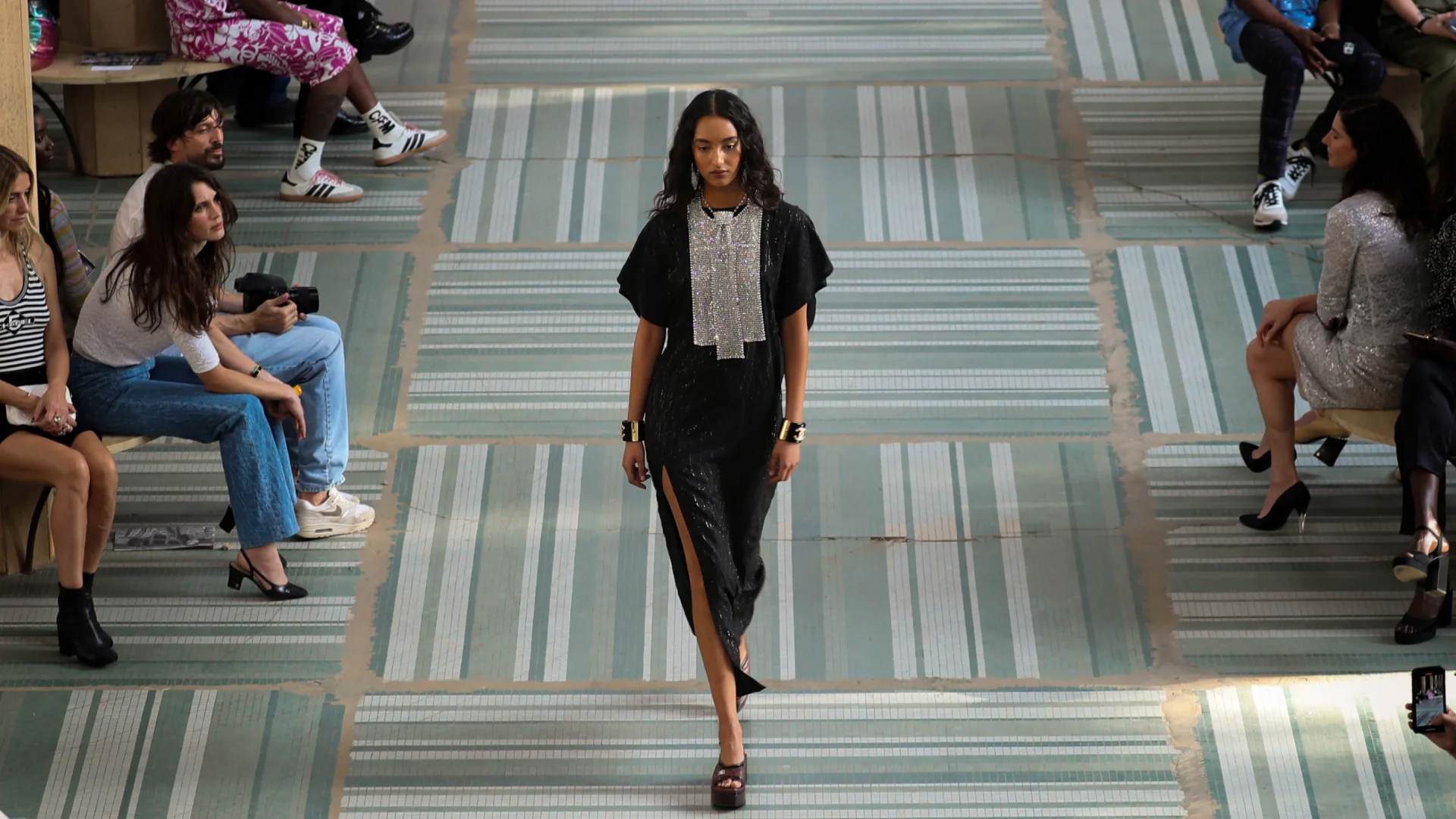 Şov, son yıllarda Dakar Bienali'ne ev sahipliği yapan Brutalist tarzdaki eski Adalet Sarayı'nda gerçekleştirildi. Gösteriye Pharrell Williams, Naomi Campbell, Whitney Peak, Nile Rodgers, Monako Prensesi Caroline ve kızı Charlotte Casiraghi'nin de aralarında bulunduğu konuklar katıldı.