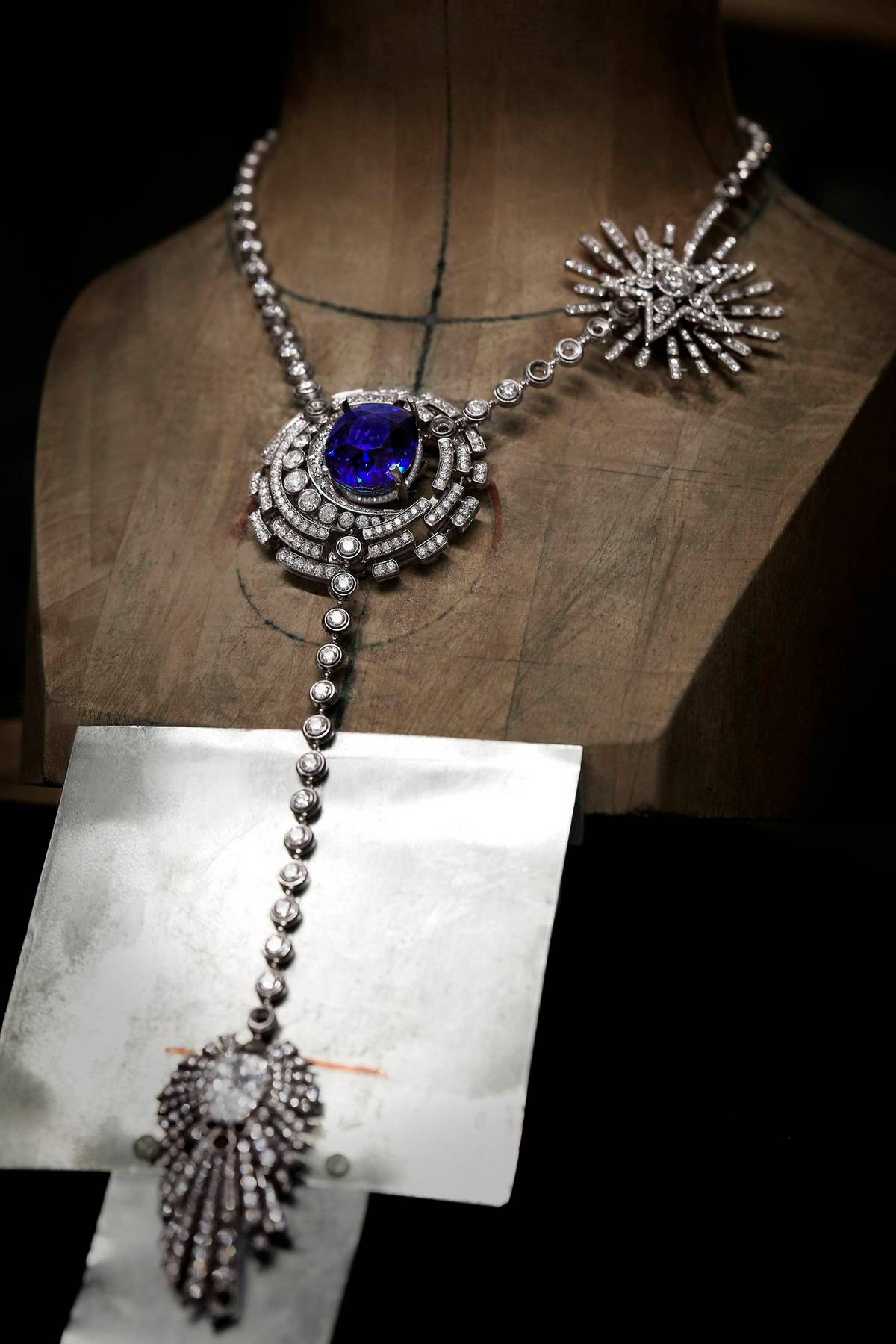 Koleksiyonun imza parçası olan Allure Céleste kolye, yıldızlardan yayılan ve onları gökyüzünün enginliğinde birbirine bağlayan ışığın kalbine bir yolculuğunu anlatıyor. Yuvarlak kesim pırlantalar arasında derin ve yoğun mavi oval safir, 55.55 karat DFL 8.05 armut kesim pırlanta olağanüstü bir parlaklıkta... Bu dönüştürülebilir parçanın üzerindeki haleler ayrılarak broş haline geliyor. Tıpkı ortadaki pırlanta sırasının bir bileziğe dönüşmesi gibi, kolye kısa bir versiyona dönüştürülebiliyor; broş ise saç tokası olarak takılabiliyor.