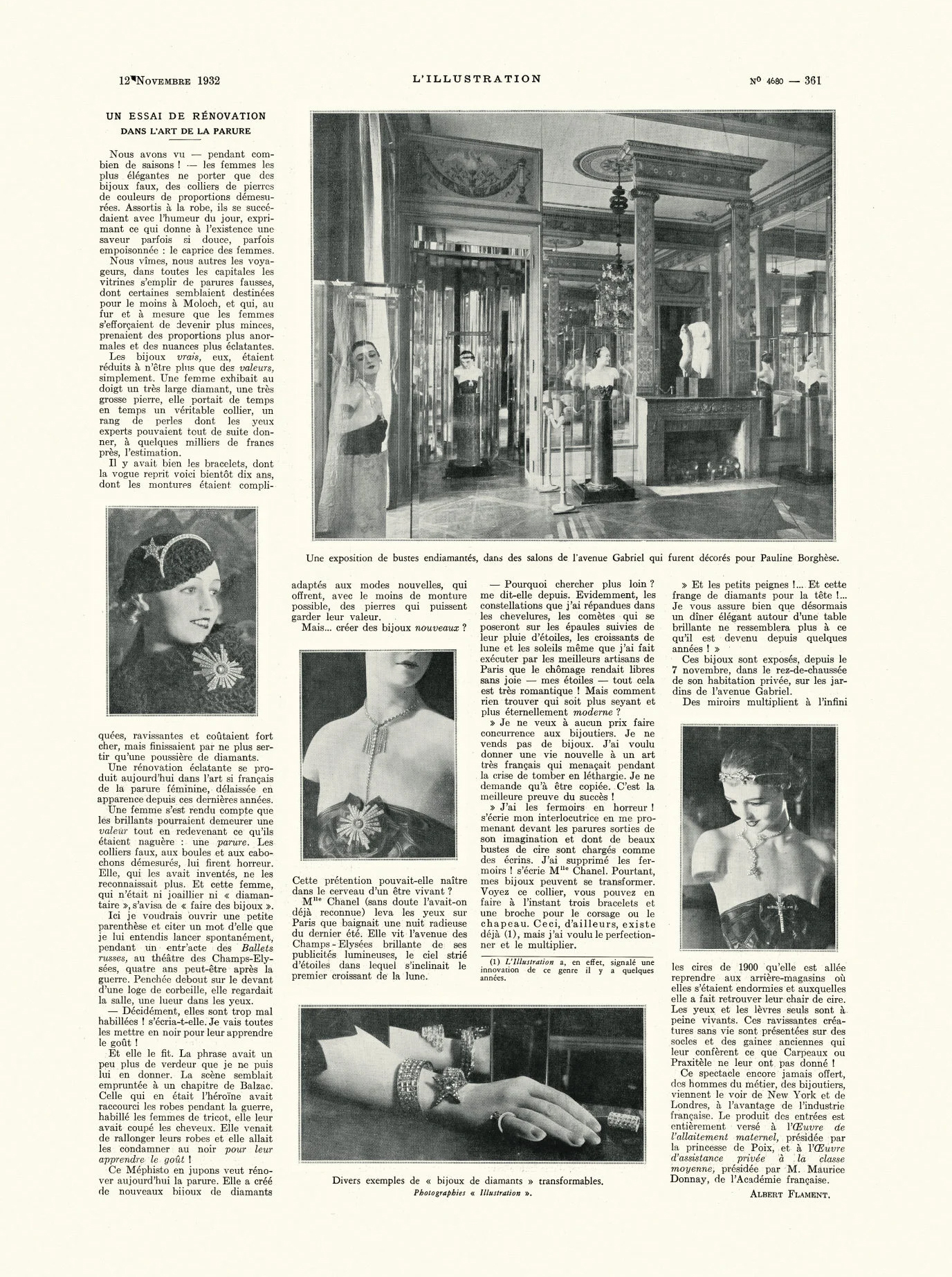Fransız moda basını Aralık 1932'de Chanel'in Bijoux de Diamants koleksiyonu hakkında yaptığı haber