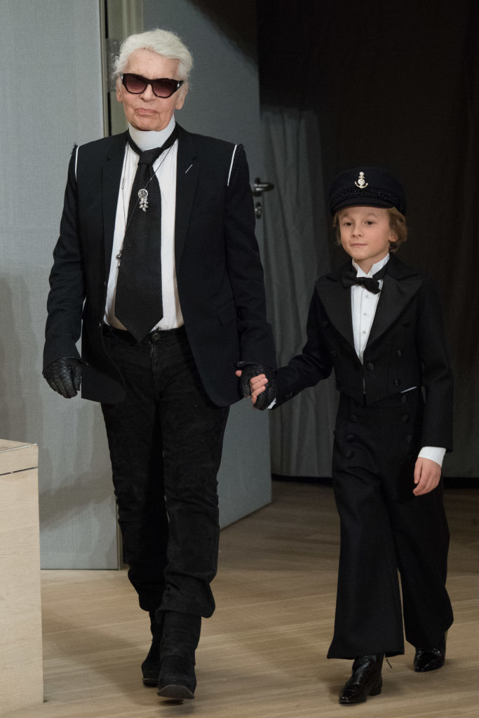 Lagerfeld, manevi oğlu Hudson Kroenig ile selam vermeye çıktığında Kristen Stewart, Tilda Swinton ve Lily-Rose Depp gibi ünlü davetliler, ayağa fırlayarak ünlü tasarımcıya olan hayranlıklarını gösterdiler.
