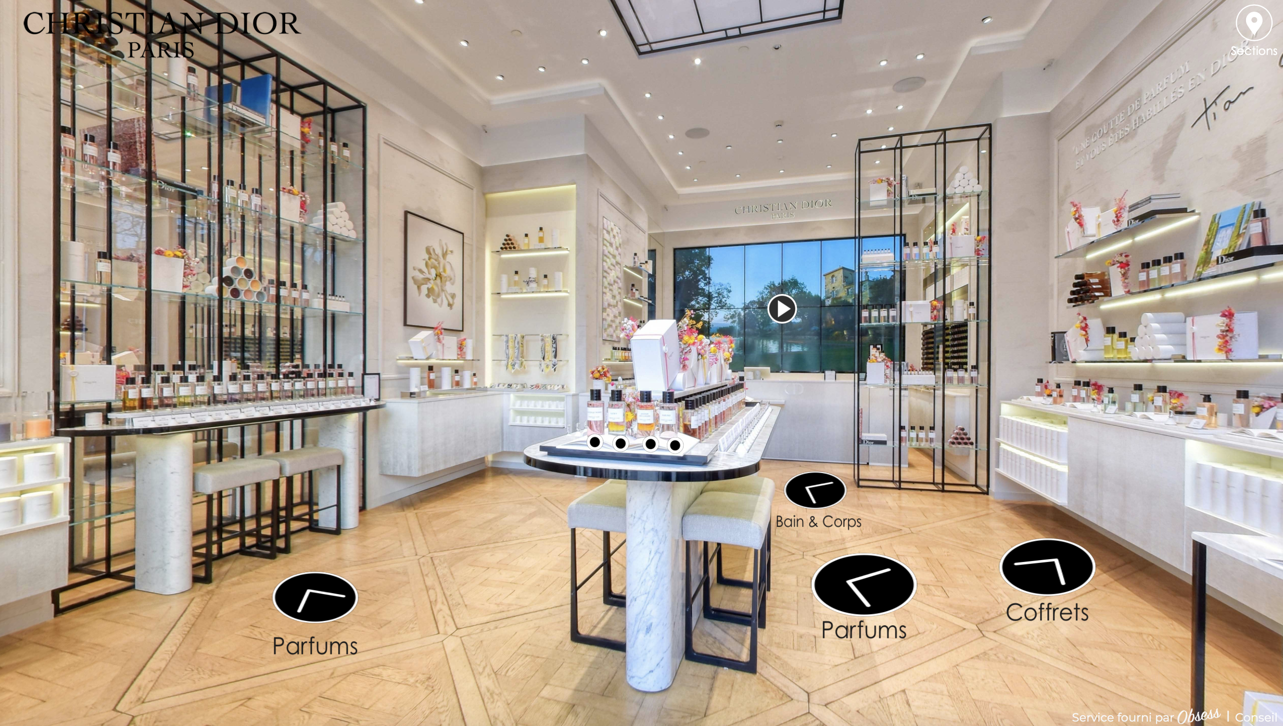 Koltuğunuzun konforundan Paris’e yolculuk yaparken, sanal deneyimin ilk görüntüsü Dior mağazasının kapısından başlıyor. Oklar ile komut vererek içeri giriyor ve daha sonra ürün inceleyebiliyorsunuz. Sanal mağazada gördüğünüz ürünlerin üzerine tıklayarak, ürün hakkında daha çok bilgi edinirken aynı zamanda yan tarafta çıkan ekranda ürünler hakkında videolar izleyebilirsiniz.