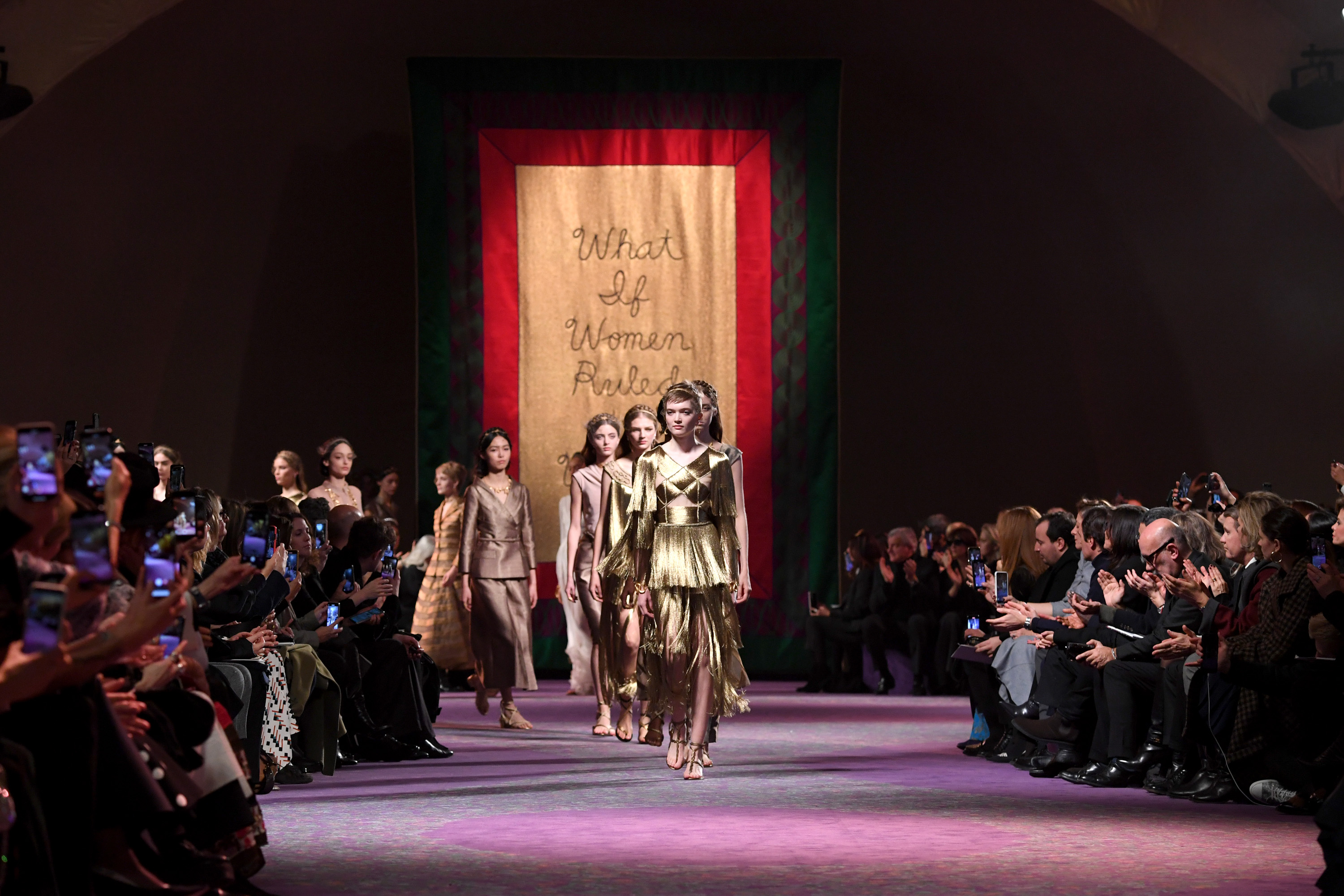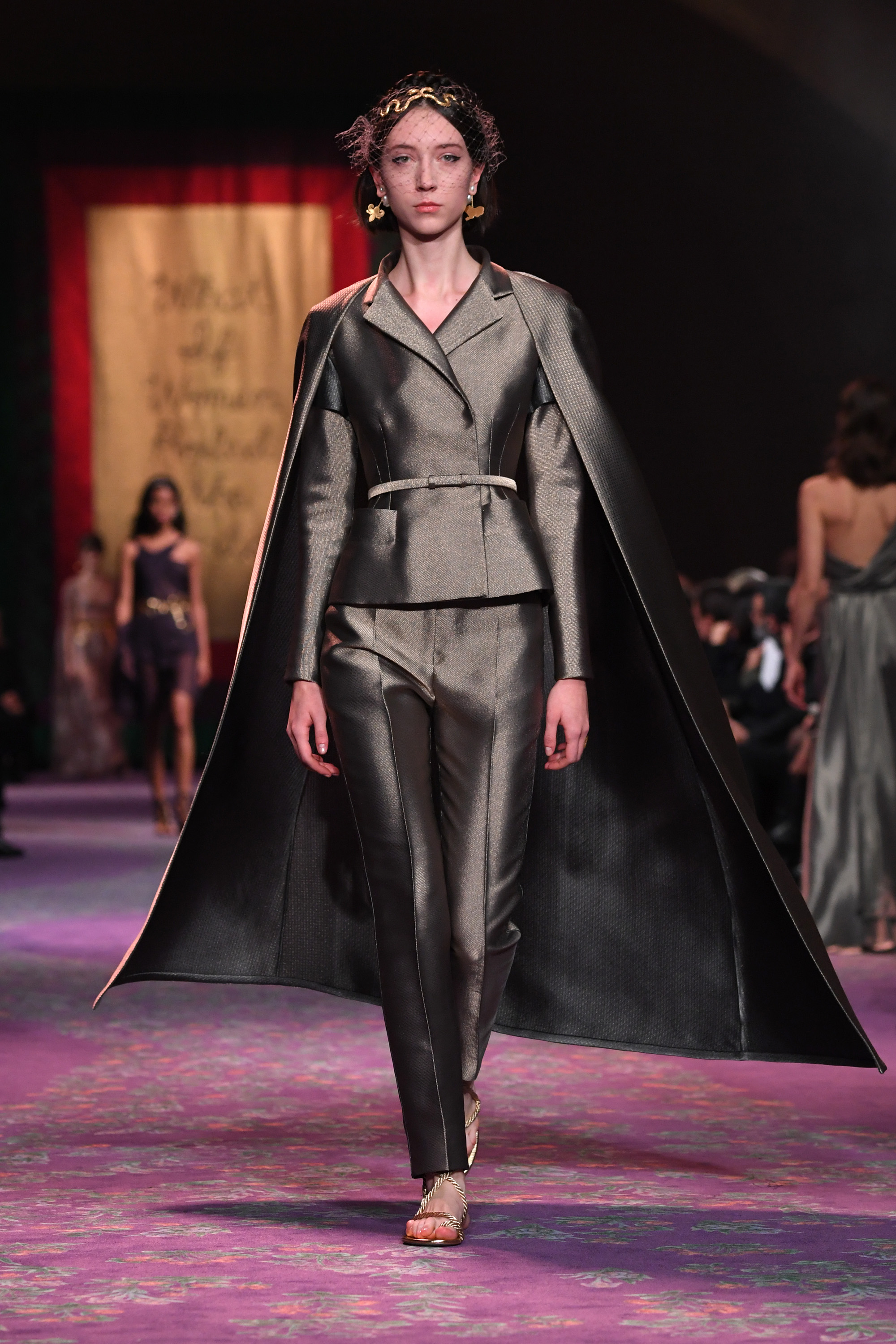 İlkbahar-Yaz 2020 Couture defilesinde pankartların yanı sıra tasarımları ile farklı temaları inceleyen Chiuri, Athena’dan ilham alan tül elbiselerden erkek giyiminden esinlenen parçalara kadar birçok parça sergiledi. Koleksiyonun en dikkat çeken parçalarından biri, takım elbise giyen bir modelin arkasında taşıdığı pelerin oldu. Kadınların toplumdaki yerini inceleyen ve değiştirmeyi hedefleyen Chiuri, Paris Couture Moda Haftasına (yine) ismini kazımayı başardı!