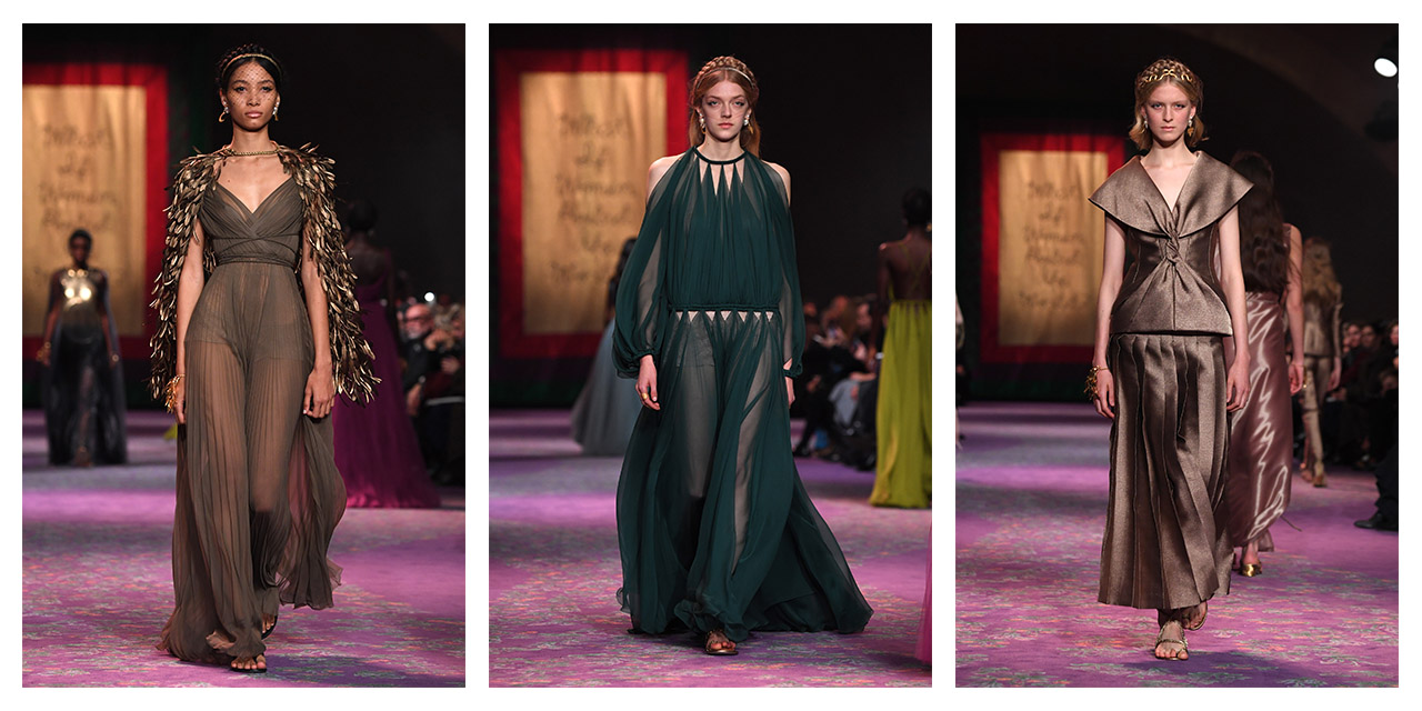 Şovun setini tasarlaması için Maria Grazia Chiuri ile işbirliği yapan Judy Chicago, Amerika’nın en ünlü feminist sanatçılarından biri. Markanın açıklamasına göre, ‘The Female Divine’ (İlahi Kadın) olarak adlandırılan defile, “Toplumsal cinsiyet merceğiyle günümüzde yaşama şeklimizi belirleyen rolleri ve güç ilişkilerini yeniden tasarladı.”