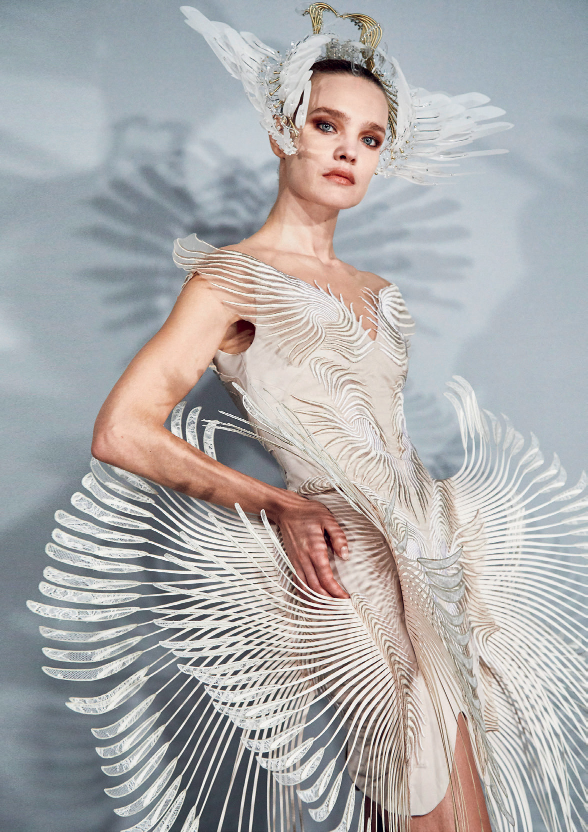 Özgürlük ve onu temsil eden uçmak gibi fikirleri vardı Iris Van Herpen’ın. Ama bunun da ötesinde 20. yüzyılın en önemli modernist şairlerinden TS Elliot’ın dizeleriydi onu yaratmaya iten.