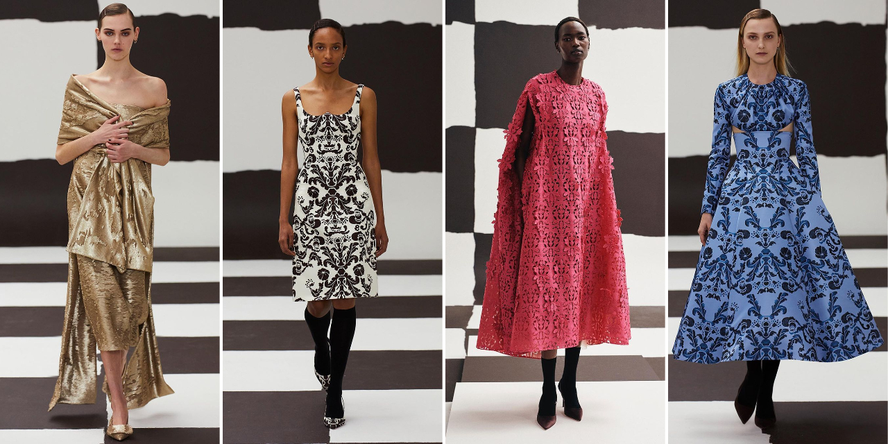 Wickstead’ın koleksiyonunda, bol bol zenginlik ve dekorasyon vardı. Koleksiyon için 3D aplike ile ördüğü barok dantel parçalardan, zengin düşes satenden düşük belli tam etekli elbiselerine, kıvrımları saran elbiseler, uzun eldivenler, titizlikle elde boyanmış dama tahtası motifine desenlerini yarattı.