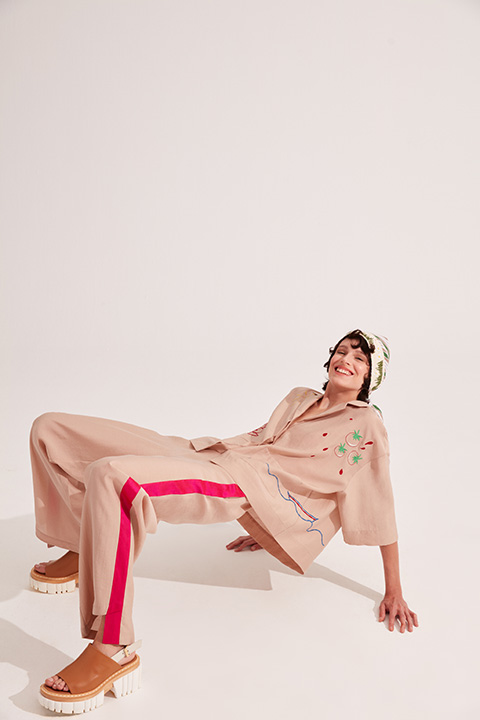 Mehtap Elaidi İlkbahar / Yaz 2022 Koleksiyonuna #KALKHEDONRIVIERA ismini veren tasarım ekibi, zamanda durmuş bir Kalamış hayal ediyor; sokakta sek sek oynayıp ip atlayan çocuklar, yalı apartmanlarından kayıklarıyla denize açılan gençler, Moda Deniz Kulübü’nün balolarına katılan çiftler, yelken kulübünde Boğaz’ı keşfe çıkanlar, apartman bahçelerinde dallarından koparılıp yenilen sulu domatesler koleksiyonun ilham kaynaklarından oluyor.
