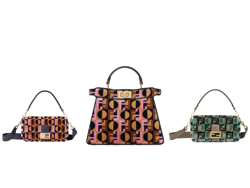 Her bir tasarım Fendi’ye özel bir etiket taşıyor. FF logosu ile Art Deco etkili puantiyeleri bir araya getiren Fendi Dots motifli, dokulu özel bir kumaşla hazırlanıyor. Renk paleti ise kahverengi–pembe ve gri–yeşil renk bloklarıyla şekilleniyor.