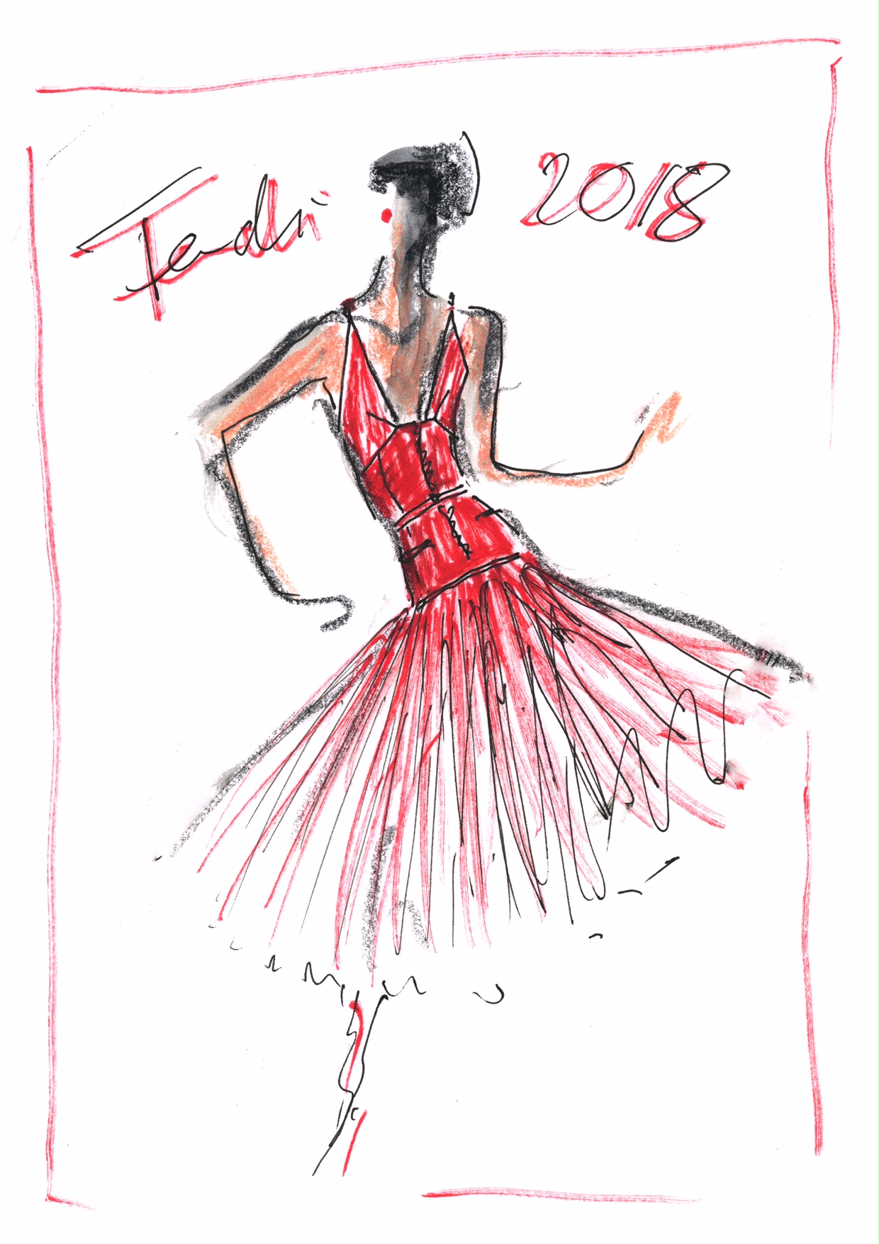 Elbise için kullanılan tüm kumaşlar Fendi arşivlerinden seçilerek herhangi bir yeni kumaş üretimi yapılmaksızın Eco-Age konseptine uygun olarak tasarlandı.