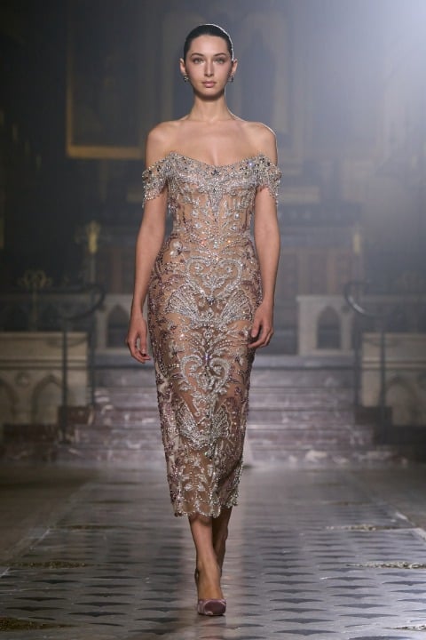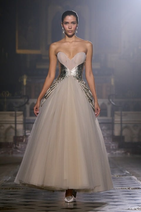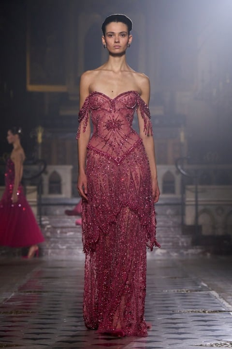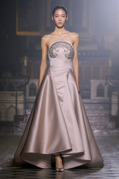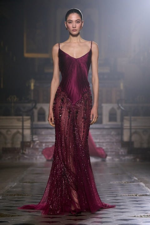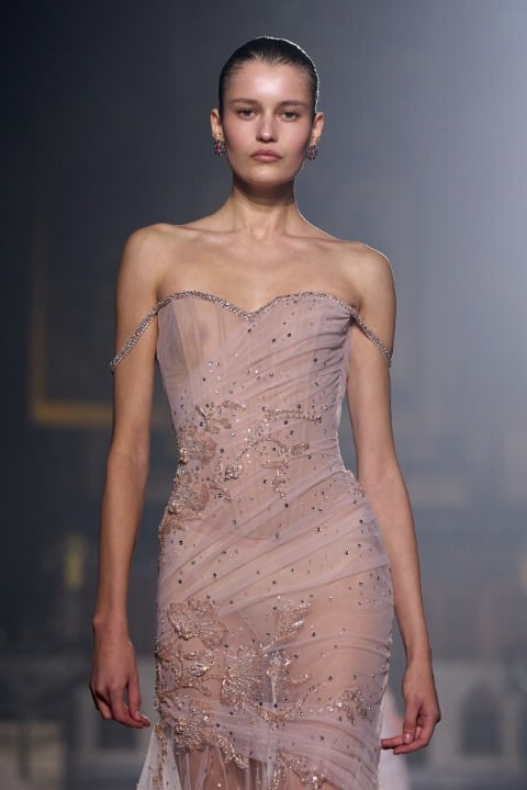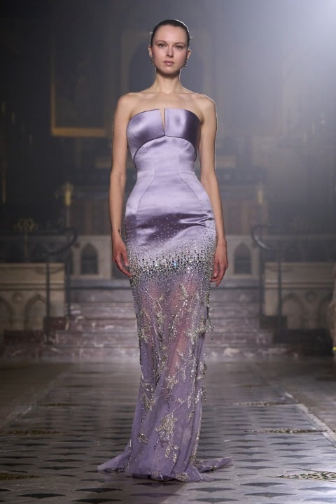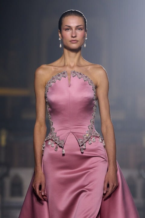 Pastel tonlarda pembe, lila, mor ve pudra gibi bir duygusal ve duyarlı bir renk paletine sahip olan koleksiyonda akışkan tül, dantel ve zarif drapeler sezgisel bir harmoni yaratıyor. İnce kumaşların akışkan formu, belki de bize aşkın olağan ihtimalleri üzerinden bir metafor yapıyor olabilir. Georges Hobeika Couture evinin başında, Georges Hobeika ve oğlu Jad Hobeika birlikte çalışıyor; bu ikili, anne Marie Hobeika’dan kalan zanaatkarlık mirasını yaşatırken couture estetiğini kendi sanatsal ve duygusal bakış açılarıyla yeniden yorumluyor.