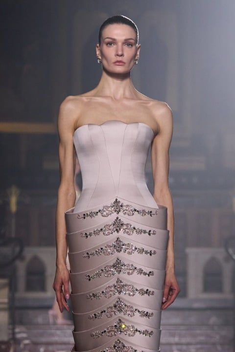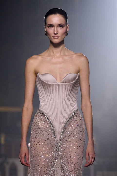 Aşkı sadece romantizm üzerinden değil, insanlar arasındaki derin bağların ve empati arayışının ifadesi şeklinde ele alan George Hobeika'nın Haute Couture İlkbahar/Yaz 2026 koleksiyonu bize ilişki kuramları hakkında moda üzerinden detaylı bir anlatı sunuyor. Bu sefer konu birine karşı hissedilen yoğun duygular değil, insan deneyiminin özünün aşkın varoluşsal bir sorgulaması eşliğinde odak noktasına konulması.