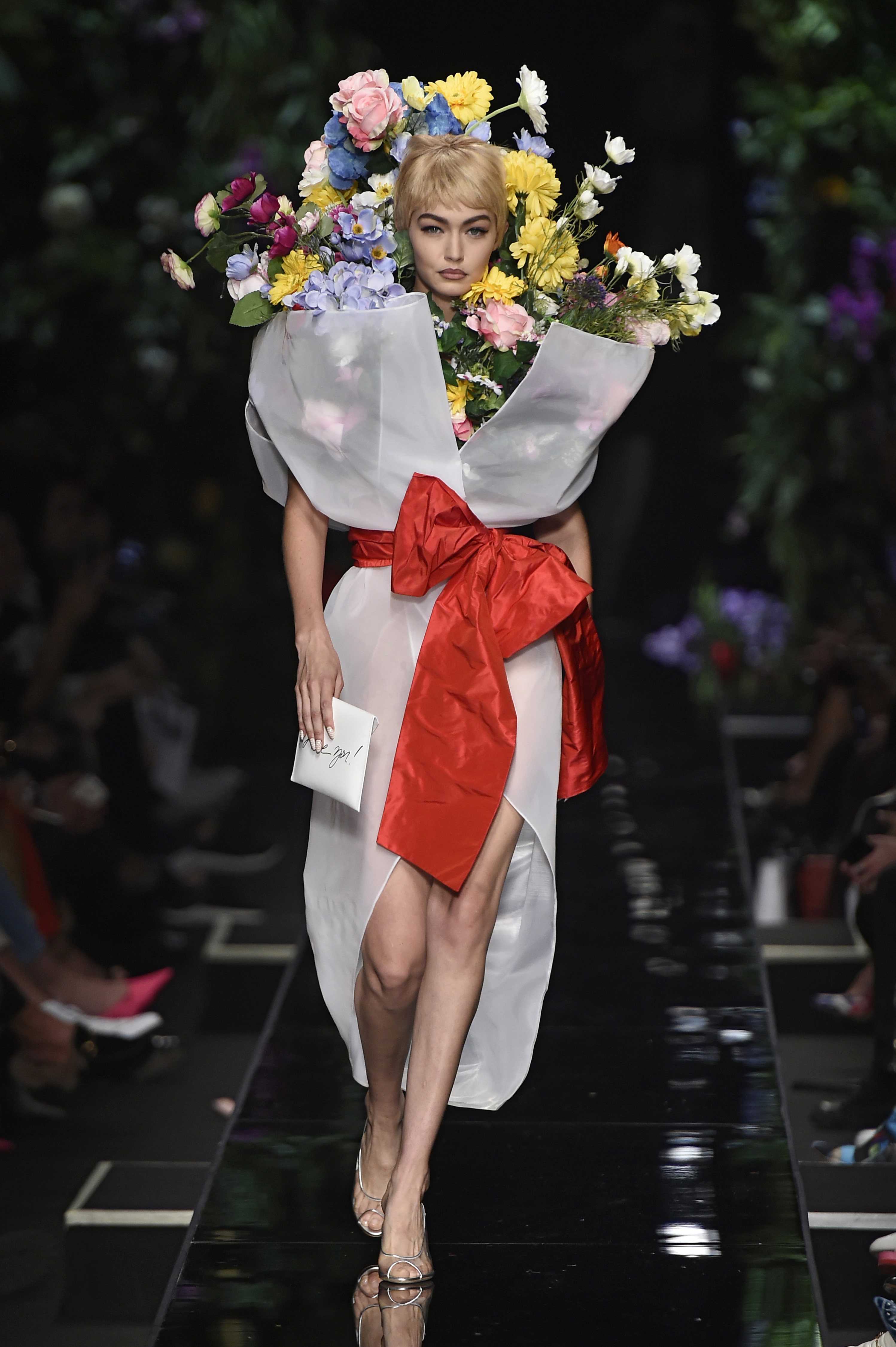 Milano Moda Haftası’nda gerçekleşen Moschino Bahar 2018 defilesinin finalinde Gigi Hadid dev bir çiçek buketi oldu. Ünlü modelin saç ve makyaj tasarımı da oldukça farklıydı. Koyu renk kaşları ile kısacık sarı saçlar çiçek buketinin arasından bile farkedilebiliyordu. Bir bahar koleksiyonu bu kadar mevsimin kendisini anımsatamazdı. Çiçekli desenlerin aksine çiçeklerin kendisini kullanan Jeremy Scott yeniden değişik bir defileye imza attı.