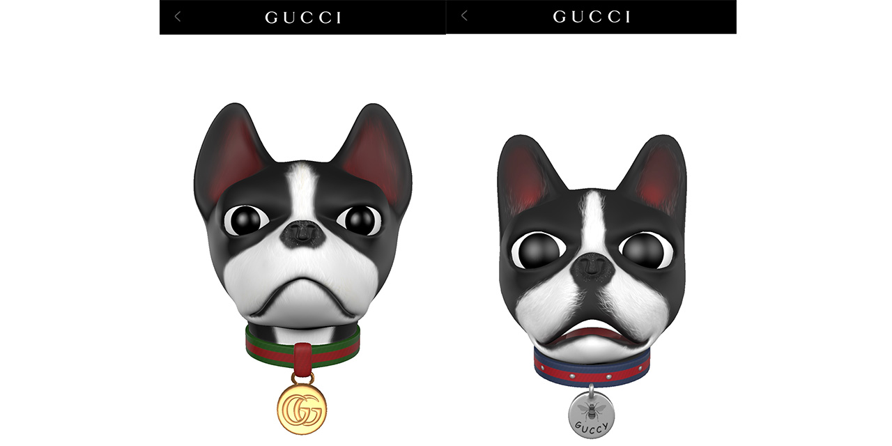 Gucci uygulamasından erişebileceğiniz animojiler, markanın tasarımcısı Alessandro Michele’nin köpeklerinden esinlendi. Boston Terrierler Bosco ve Orso, Londra kökenli Unskilled Worker’ın resimleri ile dijital ortamda tasarlandı. Çin köpek yılı için çıkarılan animojiler, Gucci’nin Instagram hesabından paylaşıldı.