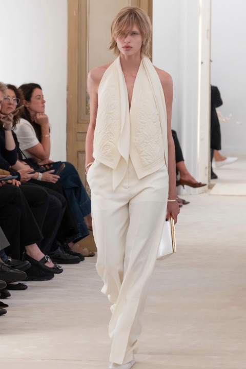 Dün Milano Moda Haftası kapsamında gerçekleşen İlkbahar/Yaz 2026 şovunda beyazın sakin ancak net tavrı koleksiyonun kilit anahtarlarından birini üstleniyordu. Ek olarak, beyaza kolayca adapte olabilen siyahlar elbiselerde tavrı yükseltirken şovun sonunda gördüğümüz somon renkli ton-sür-ton parçalar bize yumuşak bir final izletti.