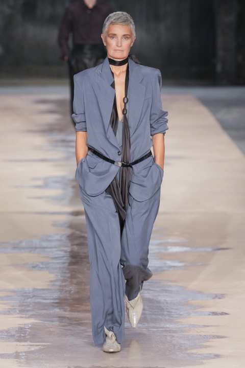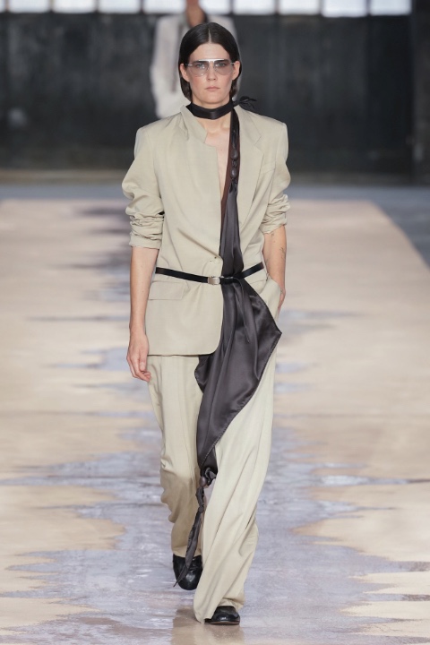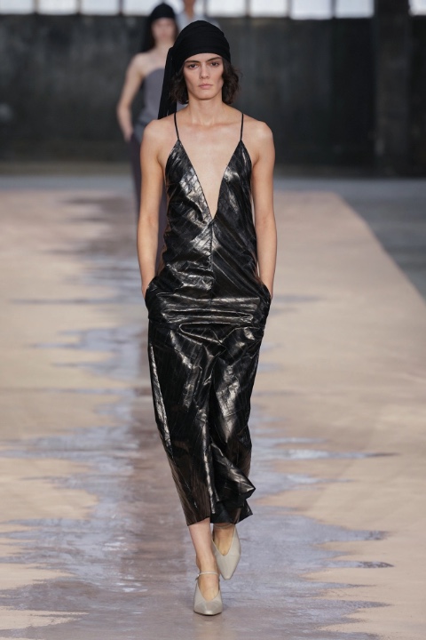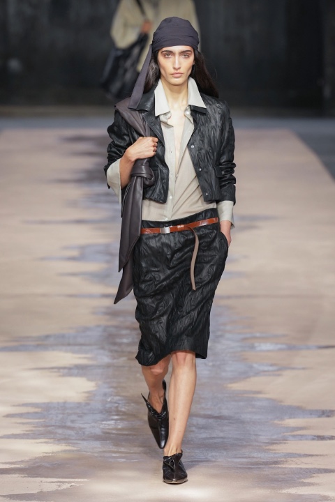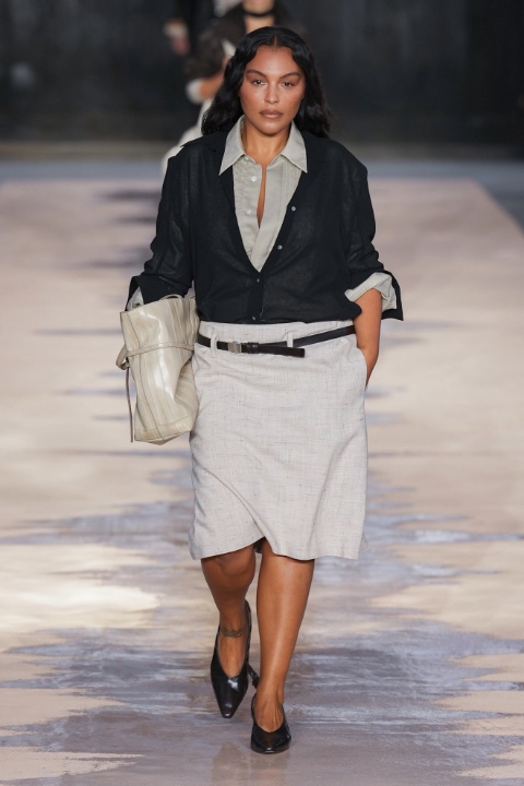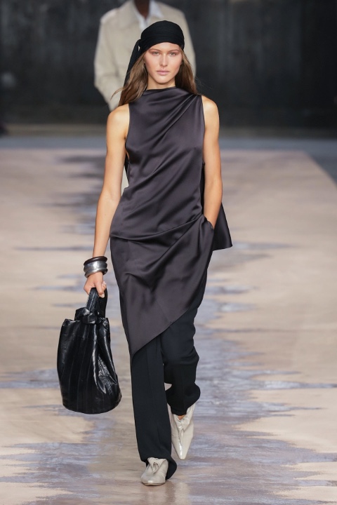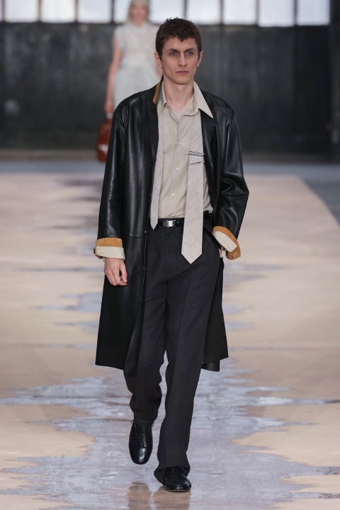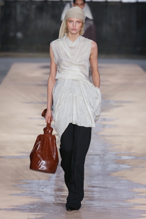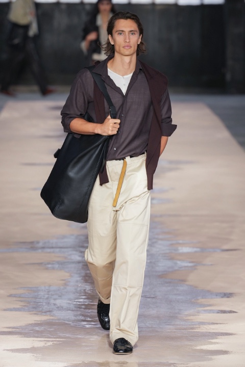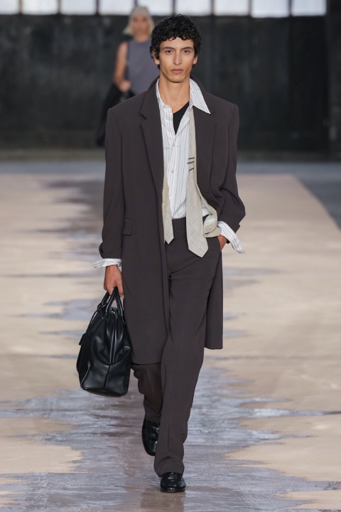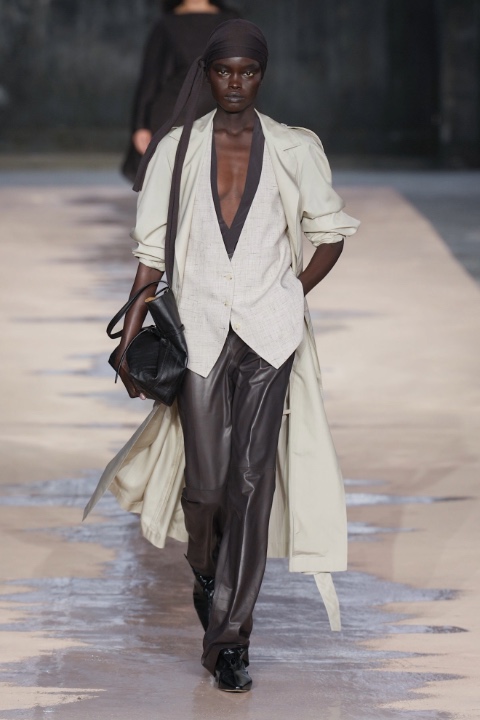 Göze çarpan detaylardan biri de sezonun dikkat çeken aksesuarı olan ince kravatlardı. Bu detay, koleksiyonun genel havasını bozmadan, klasik ile yeniliği dengede tutarak tasarıma oyun katmış. Abartıya kaçmayan yakalar ve özellikle beklenmedik çantalar koleksiyonun tamamına stil sahibi bir enerji katıyor.