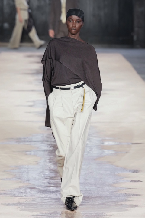 Bu sezon markanın imzası haline gelen net siluetler daha yumuşak bir forma evrilmiş durumda. Takım elbise formundaki parçalar hâlâ güçlü ama artık daha rahat; terzilik akışkanlığı sayesinde koleksiyon, gündelik yaşamla yüksek modayı aynı çizgide buluşturuyor. Hafif kumaşlar, yumuşak kesimler ve sezonun öne çıkan renklerinden mor ve maviler arasında geçiş yapan tonlar yaz aylarının doğallığını ve ferahlığını yansıtıyor.