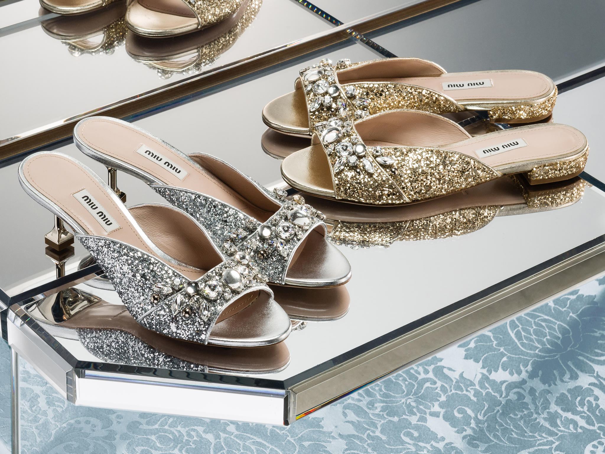 Parıltılı terlikler ve yüksek topuklu, bantlı veya platform tabanlı sandaletler iç açıcı olduğu kadar sofistike görünümleri tamamlıyor.