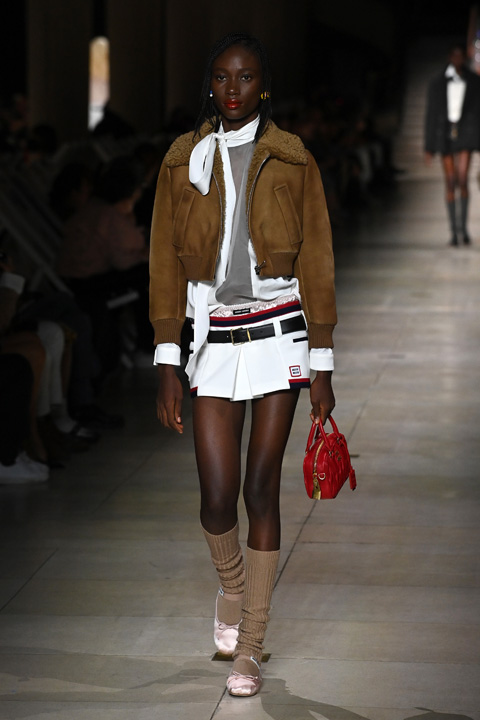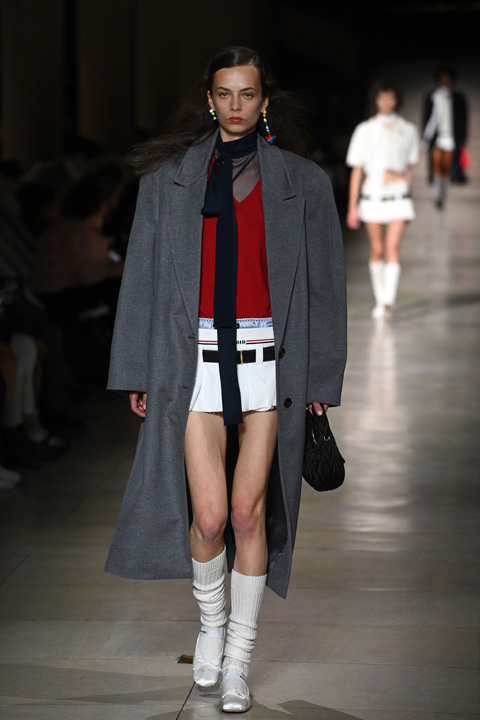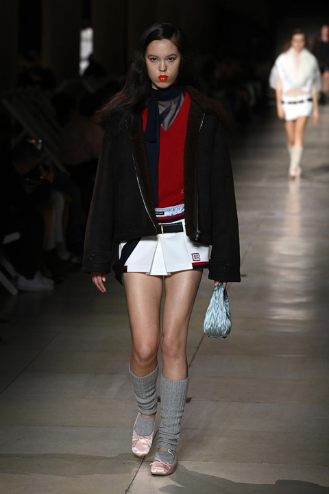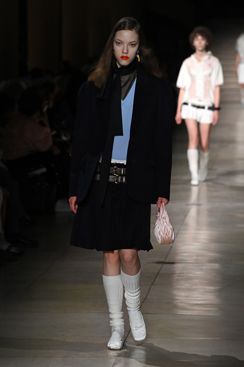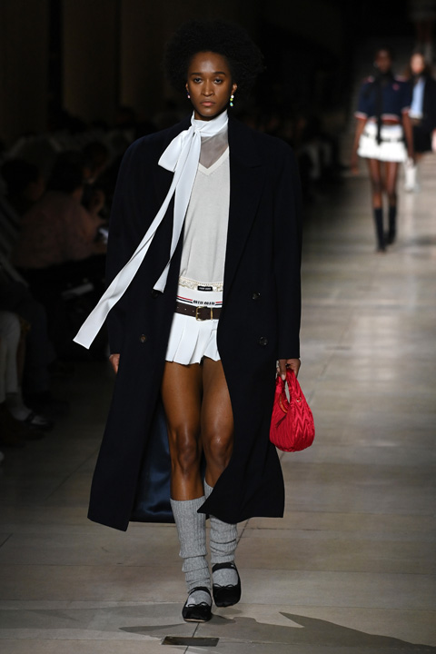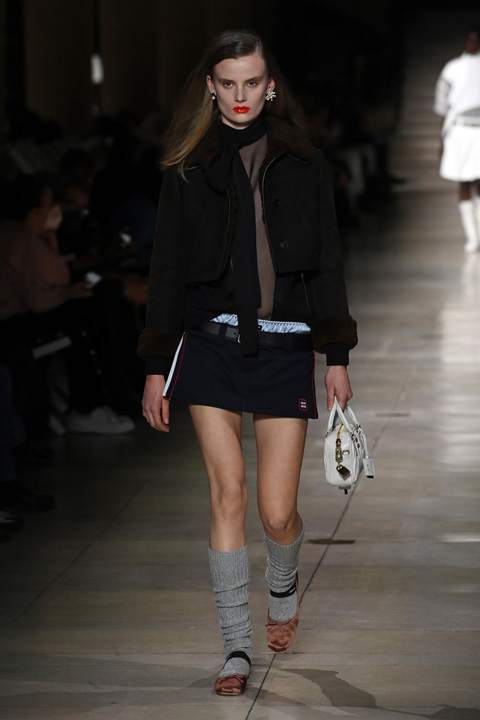 Koleksiyon, şimdi ikonik olan İlkbahar/Yaz 2022 koleksiyonunun ve aynı derecede ikonik mini eteğin devamı niteliğindeydi. Çok daha fazla düşük belli parça, logolu iç çamaşırı ve okul üniformasından ilham alan görünümler içeriyordu. Ayrıca, giysilerle eşleştirilen çoraplar ve bale ayakkabılarıyla; (Miu Miu'ya özel) bol miktarda bale etkisi görüldü.