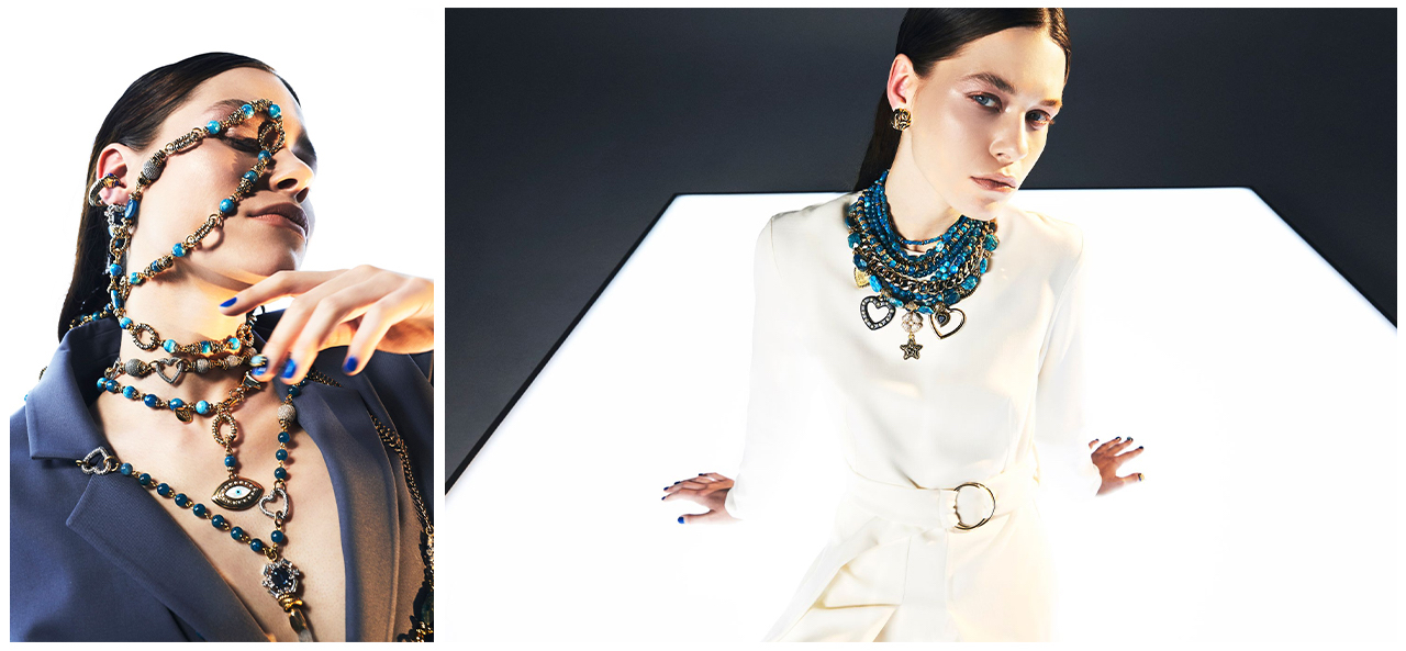 Water koleksiyonu saflık, dinginlik ve akışı simgeleyen Apetit taşının etkileyici kullanımı ile dikkat çekiyor. Koleksiyonda okyanusların her ton mavisi büyüleyici tasarımlarla sergileniyor.