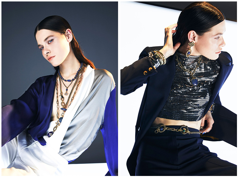 Wind koleksiyonu rüzgarın taşıdığı gücü tasarımlardaki yeşil ve mavi renkli taşların kuvvetli enerjisiyle yansıtıyor. Eski Mısır’da takı ve objelerde güç taşı olarak kullanılan malahit ve lapis’in yer aldığı parçalar koleksiyonda öne çıkıyor.