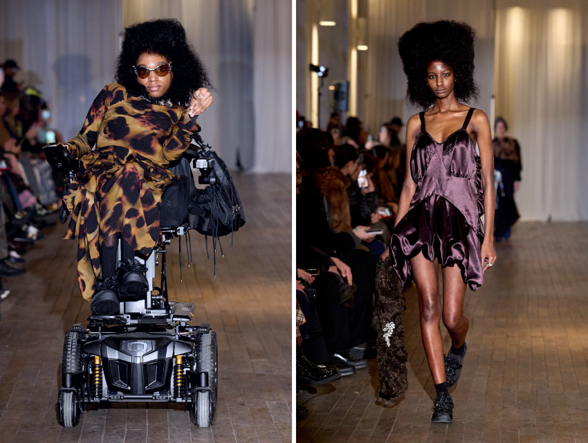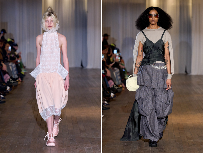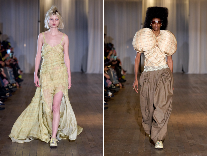Çok katmanlı görünümler, transparan dokular ve bilinçli biçimde dağınık bir stil dili… Hepsi Collina Strada’nın o çılgın ama düşünülmüş dünyasını yansıtıyor.