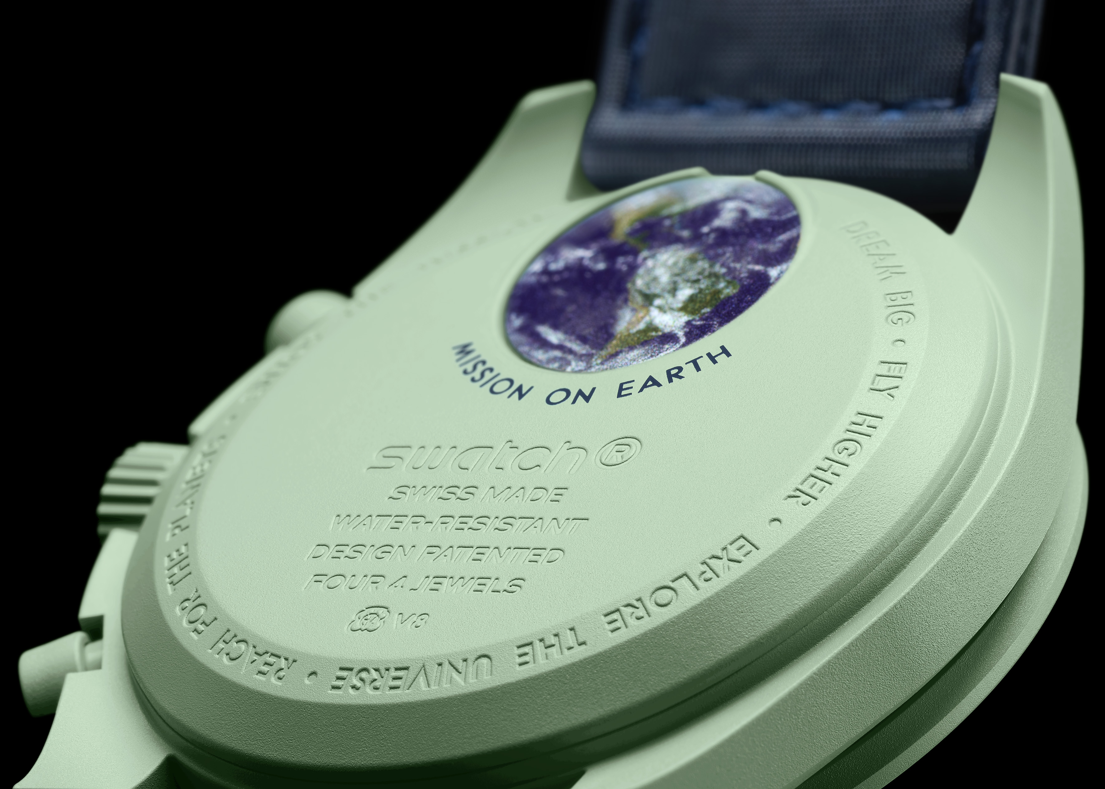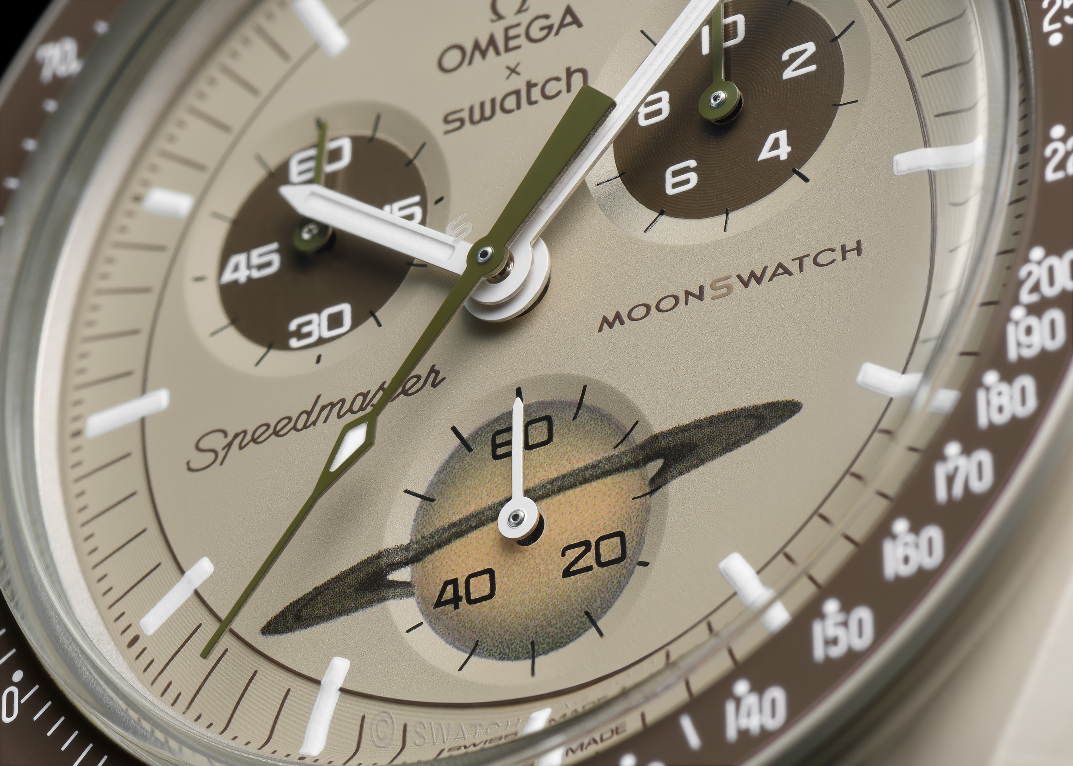 Tüm Swatch’lar üçte ikisi seramikten, üçte biri ise hint yağı temelli özel bir malzemeden elde edilen eşsiz bir alaşım olan Bioceramic’ten üretildi. Pembe ve bebek mavisi gibi renkler alışılmış Speedmaster saatlerinden farklı olsa da gerçek bir Moonwatch tutkununun bile iki saatin görünümü arasındaki farkları anlaması oldukça güç. Klasik Moonwatch tasarımının tüm ana ögeleri bu tasarımda da mevcut: Asimetrik kasa, bezelde yer alan doksan rakamı üzerindeki nokta ile meşhur takimetre skalası, özgün sayaçlar gibi özelliklerin tümü bu tasarımda da karşımıza çıkıyor.