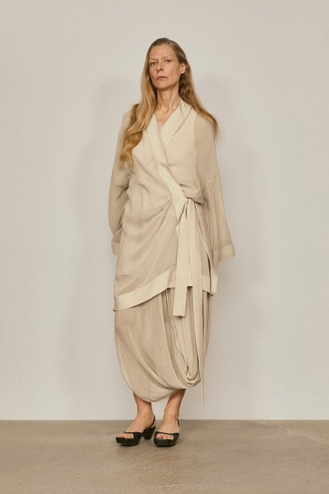İlkbahar/Yaz 2026 koleksiyonunda deri, süet, ipek ve keten gibi markayla özdeşleşen materyaller, net ve yumuşak silüetlerle yeniden yorumlanmış. Akışkan pantolonlar, hafif ketenlerle katmanlanan trençkotlar, oversize gömlekler ve dökümlü slip elbiseler oran ve form üzerinden güncellenmiş bir gardırop önerisi oluşturuyor. Feminenlik abartılı jestler yerine kumaşın hareketi ve dokunun hissiyle tanımlanıyor. Açık tonlardan koyulara uzanan nötr renk paleti ise parçalar arasında süreklilik kurarak zamansız bir kullanım alanı yaratıyor.