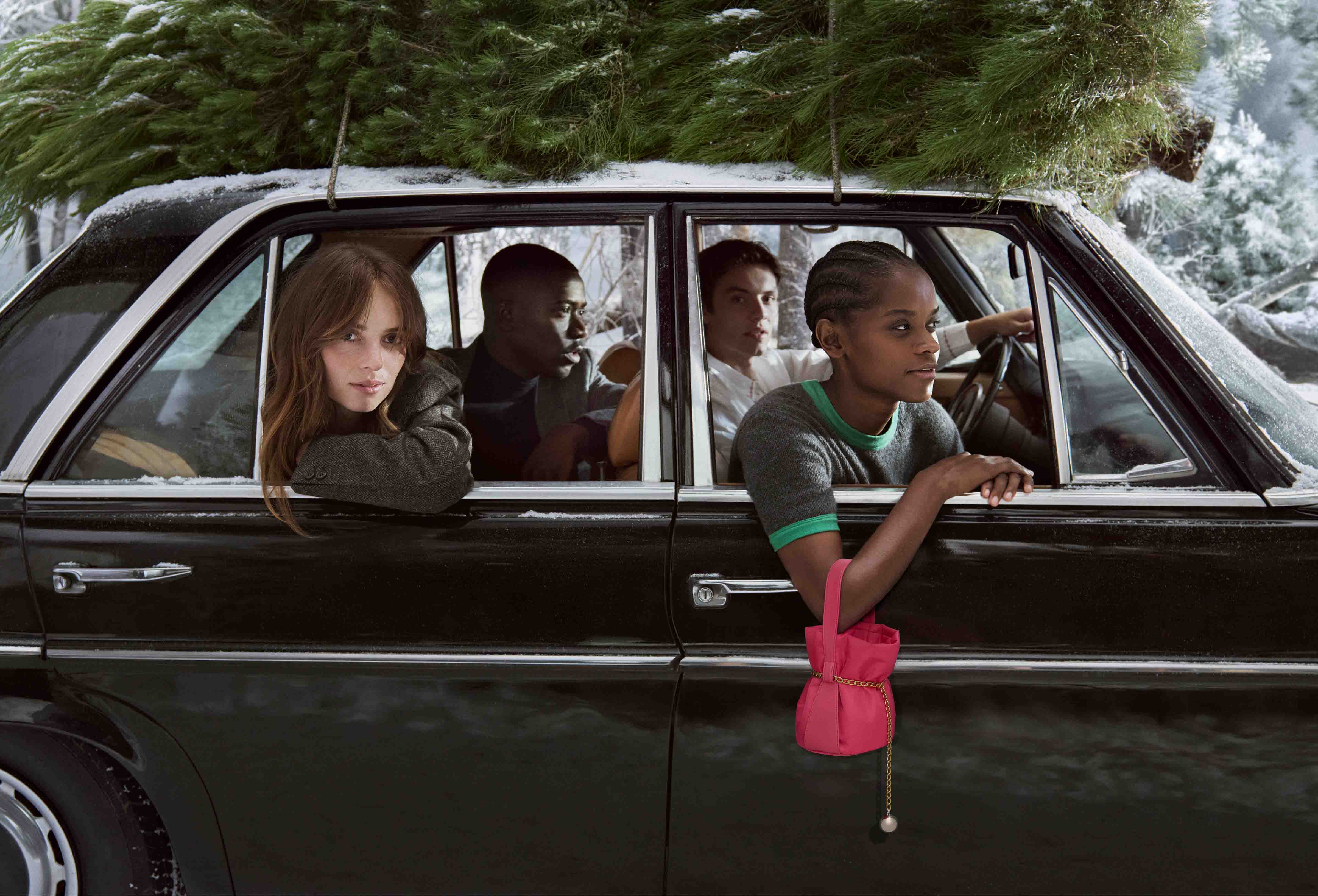 Glen Luchford’un yönettiği ve fotoğrafladığı kampanya, bir sinema sahnesi gibi kurgulanmış. Kar kaplı beyaz ağaçların arasından süzülen bir araba, ne tamamen bir başlangıca ne de sona ait. Yolculuğun tam ortasında; tıpkı hayatın bir kesitinde yakalanmış gibi. Yan koltukta ise cesur ve genç isimler oturuyor: Maya Hawke, Damson Idris, Louis Partridge, Letitia Wright ve Li Xian. Birbirine dostlukla bağlanan, farklı yollardan gelip aynı hikâyeye karışan karakterler… Belki de modern zamanın “seçilmiş ailesi”.