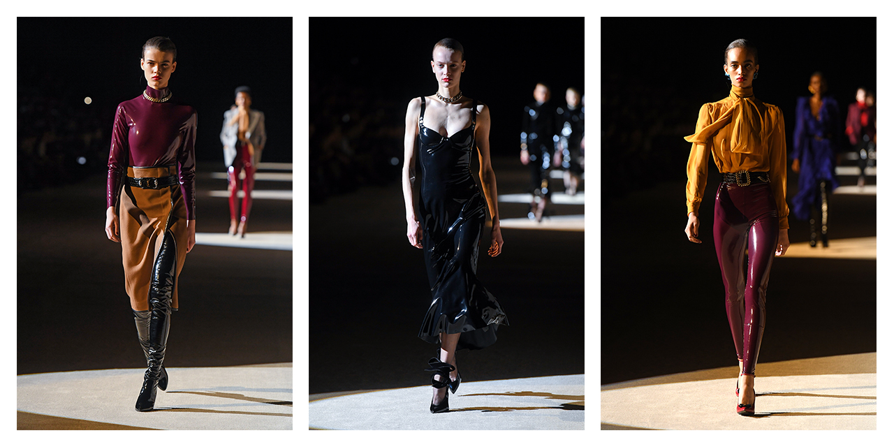 Doksanlı yıllarda hayatımıza giren lateks kumaşı, dönemin en popüler trendlerinden biri olmuştu. Sonbahar-Kış 2020 sezonunda bir nostaljik trendi daha modanın spot ışıkları altına alan Saint Laurent defilesi, asi ama modern kadınlar için tasarlandı...