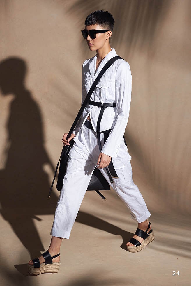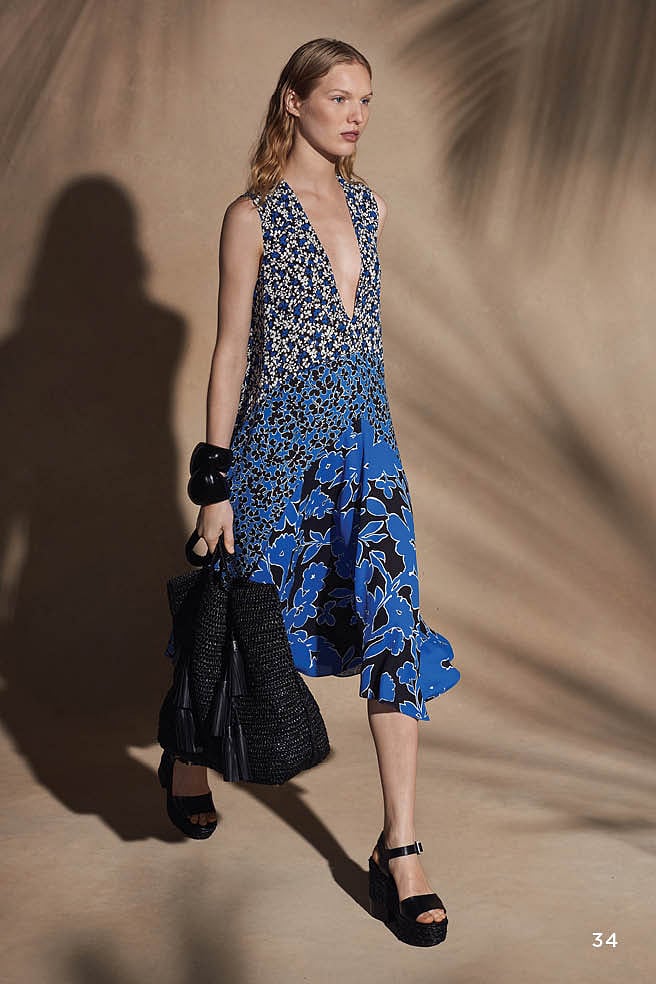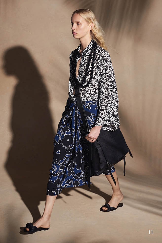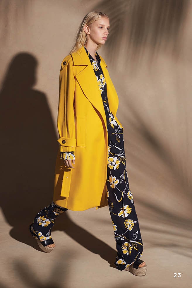 Grafikleştirilen floral desenlerle ince ve kalın cesur çizgilerin birleşimi, tropikal stilin cazibesini yansıtıyor. Oversized modeller, erkek koleksiyonundaki blazer ceketler, trençkotlar, pantolonlar, pareolar ve pijamalarla uyum sağlıyor.