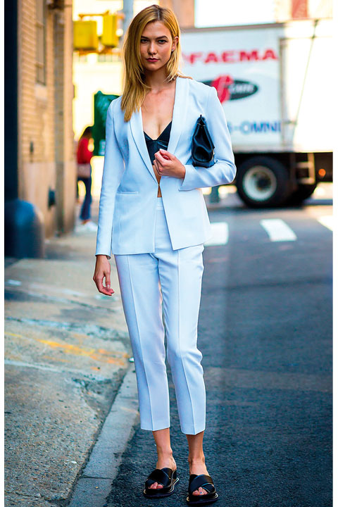 Mücevhersiz sade bir boyun dekoltesi, takım elbisenin altından görünen büstiyer, motorcu ceketiye yaratılan feminen bir duruş; hepsi de incelikli ve gizemli bir seksapel oyununun stil ögelerinden.