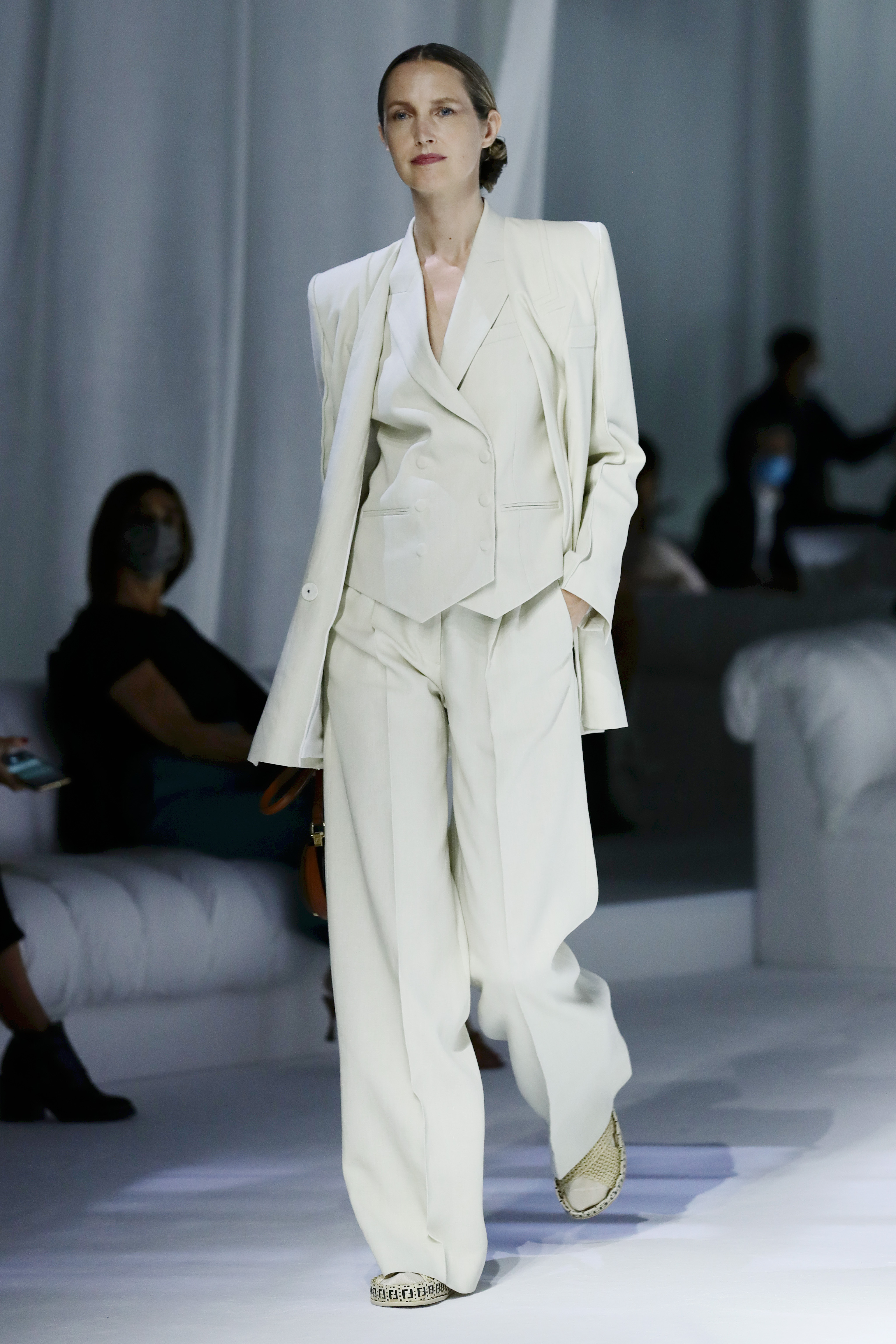 Oldukça cinsiyetsiz bir koleksiyon tasarlayan Venturini Fendi, hem erkekler hem de kadınlar tarafından giyilebilecek takım elbiseler, gömlekler ve tunikler gösterdi. İlkbahar Yaz 2021 koleksiyonu için ilk defa kadın ve erkek tasarımları bir arada sunan Fendi, ‘power dressing’ akımının altını çizdi.