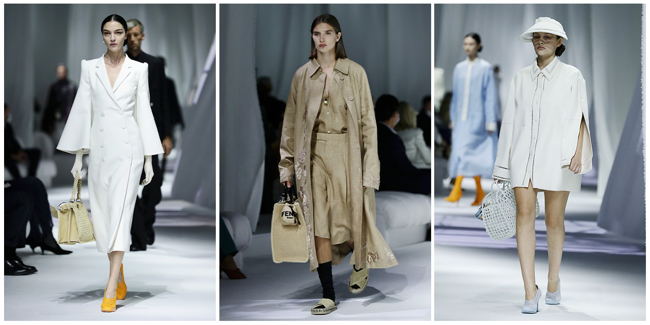 Koleksiyonda kadınları güçlendirmek ve kadınları dinleyen erkekleri yansıtmak istediğini dile getiren Fendi, tasarımları için antik ve klasik keten kumaşı ile başladı. Antik Mısır’da popüler olan ketenlerin aynı zamanda İtalyan modasının önemli bir parçası olduğunu vurgulayan Fendi, bu kumaşın sürdürülebilir, sade ama zengin olduğunu belirtti. İlkbahar ve yaz sezonlarının favori kumaşları arasında olan ketenler, yeni koleksiyonda şortlu takımlar, tulumlar ve üç parçalı takımlar halinde boy gösterdi.