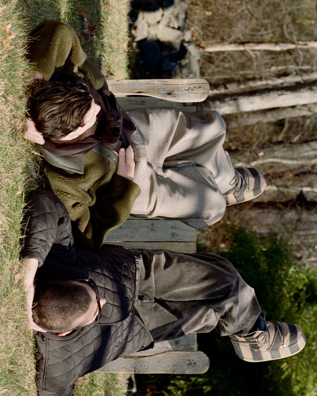 Koleksiyon yalnızca dağ gezileri ya da kayak tatilleri için değil şehir hayatı için de tasarlanmış. Bunu kampanya çekiminde de açıkça görüyoruz. Doğanın içinde bir evde geçen çekimlerde iki erkeği günlük rutinlerinde izliyoruz. İç mekanda atkılar, dışarıda botlar; tüm parçalar günün her anına uyum sağlıyor. Koleksiyon, kış stilini sadece zirvelerde değil kendi yaşam alanında da özgürce yorumlayabilirsin diyor sanki.