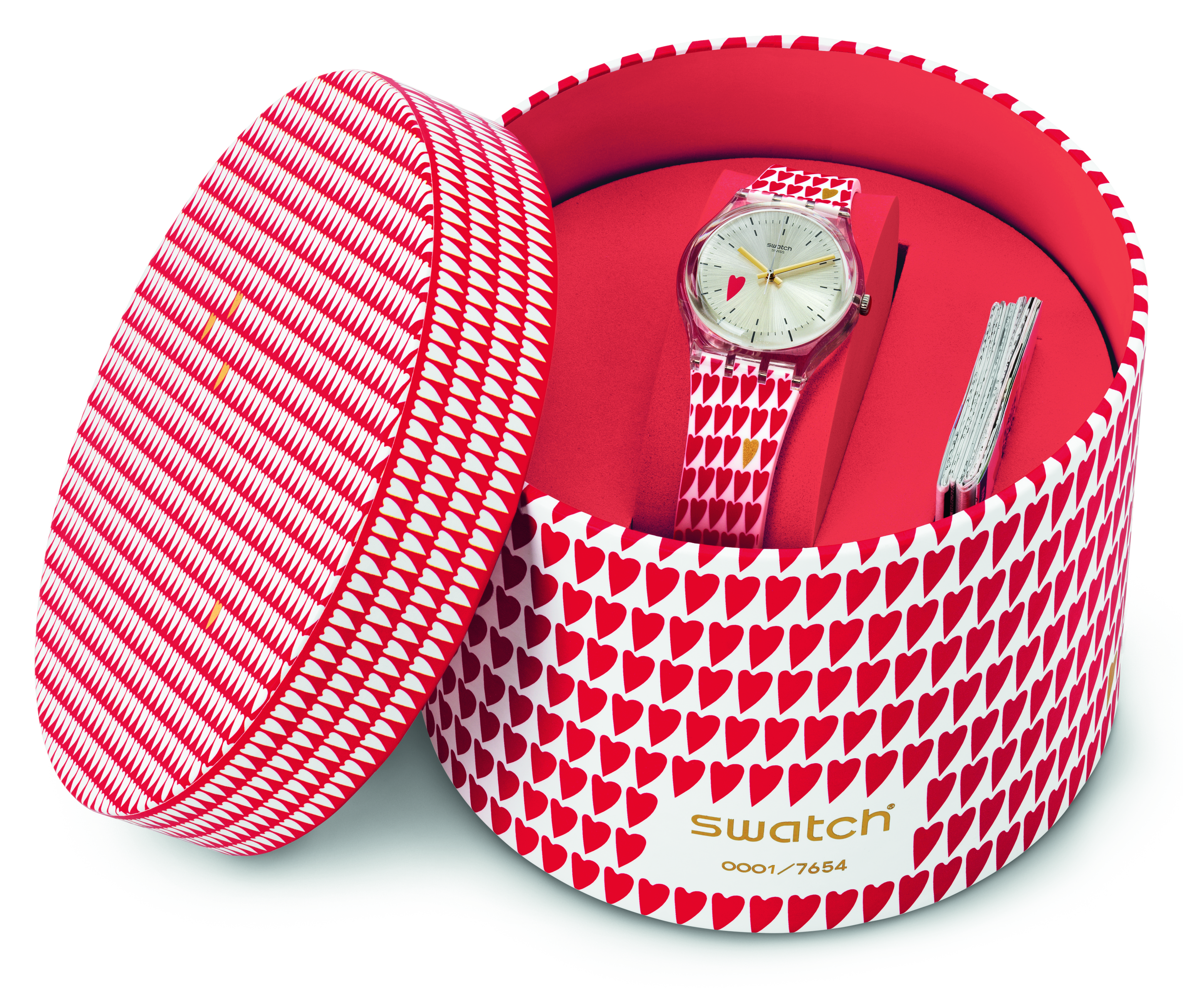 Sınırlı sayıda, sadece 7.654 adet ve numaralı olarak üretilen Sevgililer Günü Özel Saati farklı ve göz alıcı bir pakette sunuluyor. İlham veren saat, minik kırmızı kalplerle kaplanmış beyaz kutusu ve HEARTY LOVE baskılı kayışı ile tüm dikkatleri üzerine topluyor. Hava durumu ne olursa olsun, yılın en romantik günü 14 Şubat’ta HEARTY LOVE yağmuru yağacak. Bu Sevgililer Günü özel Swatch’ı ile kalp yağmurunun bir parçası olun.