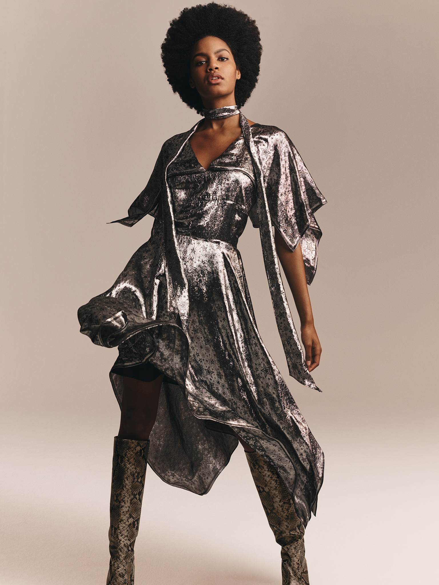 Tommy Hilfiger ile Zendaya işbirliğinde tasarlanan TommyXZendaya koleksiyonu, 1970’lerin ikonik stillerini Tommy Hilfiger'in klasik Amerikan ‘cool’ mirasıyla buluşturuyor. Monokrom renk paletinde yoğun bordo ve metalik tonlar harmanlanırken, desenler ve puantiyeler biçimli siluetlere ve fular elbiselere beklenmedik yorumlar kazandırıyor. Gümüş rengi detaylarla zenginleşen yumuşak deriler, imitasyon kürkler ve doygun kadifeler, lüks bir dokunuş katıyor. Balıksırtı desenli, terzi işi dikiş zamansız trençkotu, ince belli blazer ceketi ve bol paçalı pantolonu şıklaştırıyor. Yıldızların yanı sıra kar leoparı görünümlü ve yılan derisi baskılar, maksi eteklere ve anvelop elbiselere eğlenceli bir fark katıyor. Giysi ve aksesuarlardan mayo ve iç giyime kadar güçlü ve özgüvenli bir duruş sergileyen Sonbahar 2019 TommyXZendaya koleksiyonu, dönemi tanımlayan stilleri cesur yorumlar ve yeni tasarımlarla sunuyor.