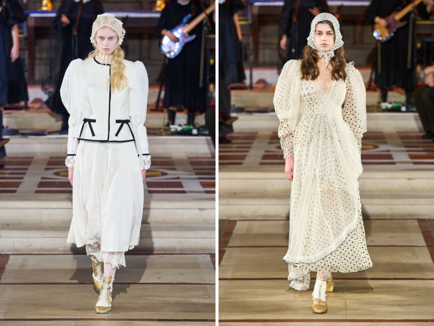 Koleksiyonun en net mesajı desenlerde. Çizgiler, ekoseler ve puantiyeler neredeyse her görünümde var. Zamansız desenler, koleksiyonun romantik havasını dengeliyor ve görünümlere yapı kazandırıyor. Saç aksesuarları da dikkat çekici. Kurdeleler, çiçek detayları ve inciler yalnızca tamamlayıcı değil, görünümün merkezinde. Tasarımcının imzası olan dantel ve inci kullanımı bu koleksiyonda da devam ediyor.