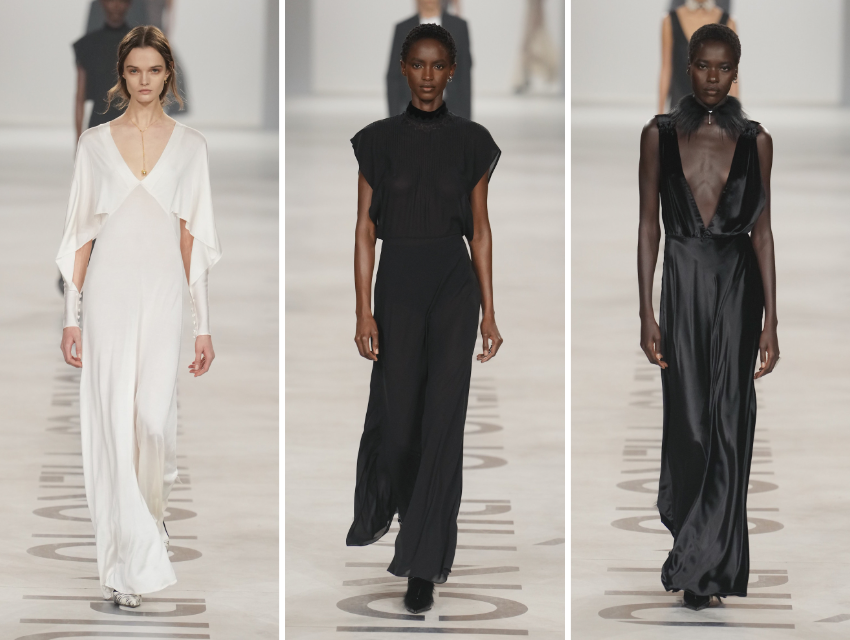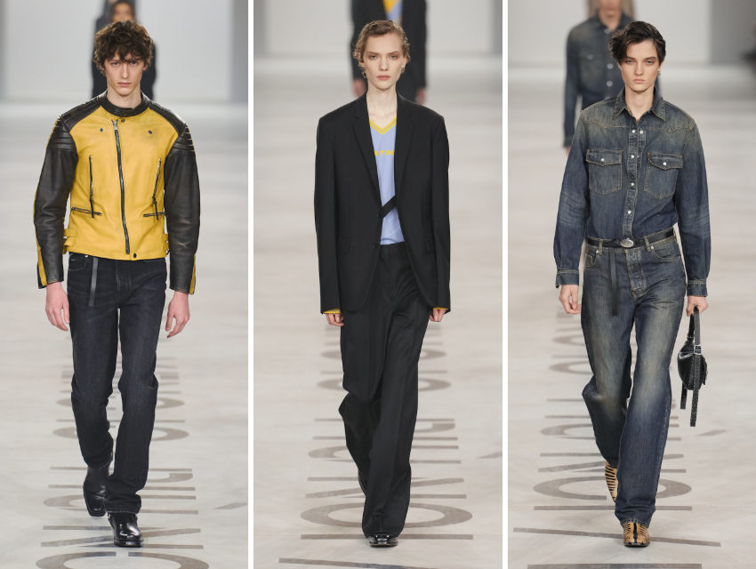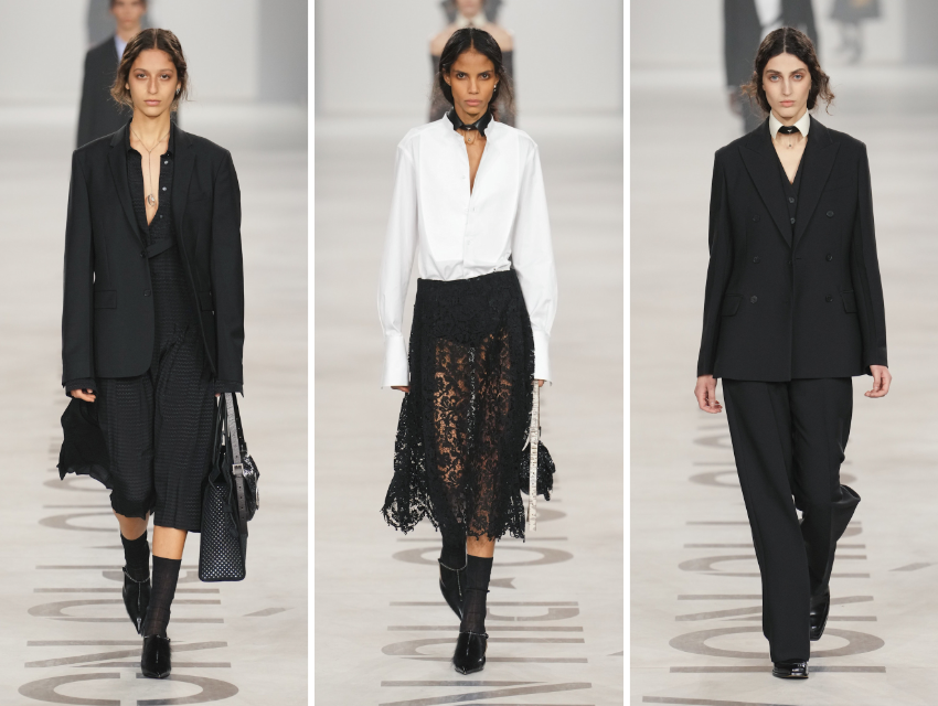 Koleksiyonun temelinde iyi kesim, net siluet ve zamansız parçalar vardı. Çift düğmeli ceketler, daralan etekler, askı detaylı tek düğmeliler ve hem kadın hem erkek üzerinde tekrar eden denim görünümler ortak bir stil dili oluşturdu. Siyahın hakimiyeti, dramatik bir jestten çok kontrollü ve yalın bir başlangıca işaret ediyordu. Bu, gösterişli bir yeniden icattan ziyade güvenli bir yapı inşasıydı.