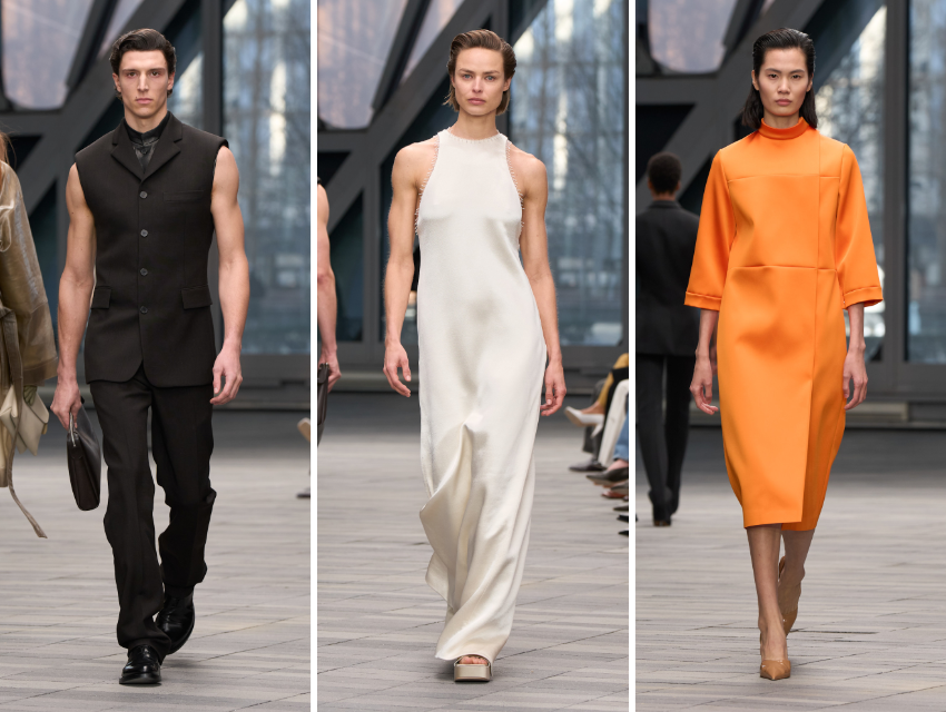 Ortaya çıkan siluetler ince ve uzundu. Katı siluetler gittikçe yerini akışkan siluetlere bıraktı. Transparan görünümlerin yanı sıra denim üzerine denim gibi katı görünümler de vardı. Minimalizm burada steril değil, kontrollü bir hedonizmle temas halindeydi. Transparan trençkotlar ve kolsuz erkek takım elbiseleri ise gücü cinsiyetten bağımsız bir çizgide yeniden yorumluyordu.