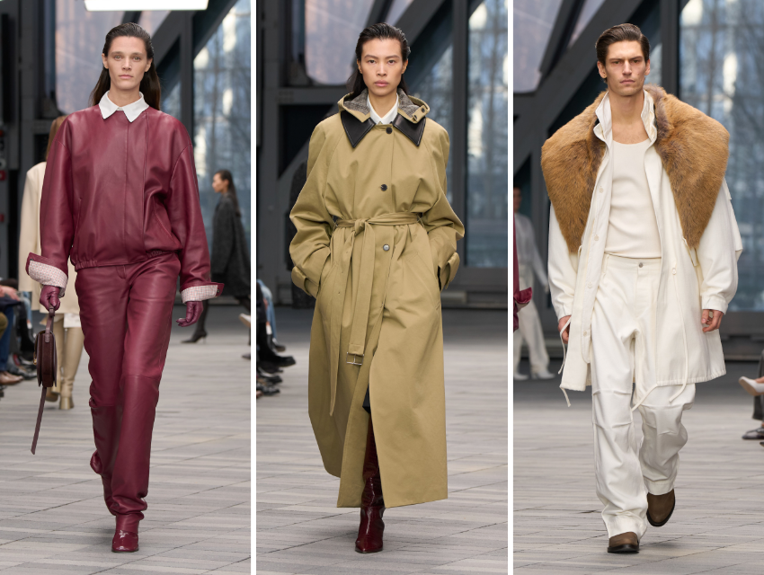 Bununla birlikte koleksiyon, ten göstermek istemeyenler için de güçlü öneriler sunuyor. Nötr tonlarda dar kesim takımlar, günlük deri bomber ceketler, renkli shearling yakalı heykelsi topcoat’lar… Leoni, temel parçaları yükselterek Calvin Klein’ın özüne yaklaşmayı başarıyor: gündelik olanı arzu edilir kılmak.