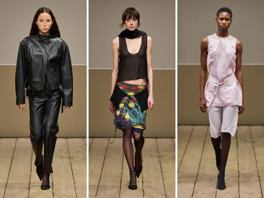 Sonbahar/Kış 2026, markanın olgunlaşma anı gibi okunabilir. Daha iddialı deri takımlar, shearling ve suni kürk birleşimleri, neredeyse tüy hissi veren yüzeyler ile koleksiyona yeni bir dokusal derinlik katıyor. Akşam giyimine dair önerileri ise net: İnce askılı saten slip elbiseler işlevsel kayış detaylarıyla tamamlanmış. Bu yaklaşım, 90’ların minimalizmine göz kırpıyor, özellikle Helmut Lang çizgisini hatırlatan bir sadeleşme söz konusu.