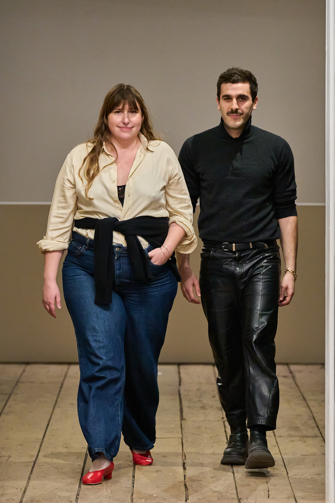 Eckhaus, New York’ta, Latta ise Los Angeles’ta yaşıyor. Markanın doğasında bir yin-yang dengesi var. Bir yanda çocukça çizgili, daraltılmış kazaklar, diğer yanda ipek gömlek, bedene oturan denimler, kısa ceket ve shearling kombinleri. Sertlik ve yumuşaklık, gündeliklik ve iddia birlikte var oluyor.