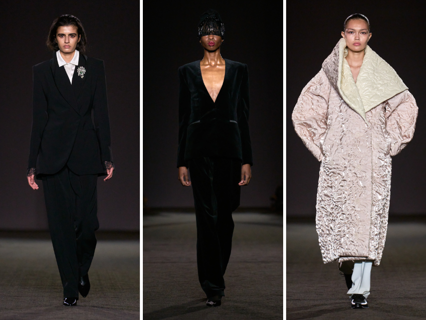 Yorganı andıran kapitone paltolar ise rahibe görünümlerini çağrıştırıyor. Bu detaylar kostüm hissi yaratmadan, kişisel geçmişi çağdaş siluetlere taşıyor.