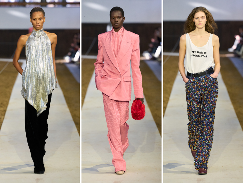 Dantel eklemeli ipek üstler ve elbiseler, cool-girl denimler ve plastik içermeyen payetlerle hazırlanmış Starburst elbise gibi parçalar, McCartney’nin geçmiş koleksiyonlarına saygı duruşu niteliğinde. Stirrup pantolonlar ve püsküllü kırmızı çantalar ise tasarımcının atlara ve özgürlüğe olan tutkusunu hatırlatıyor.