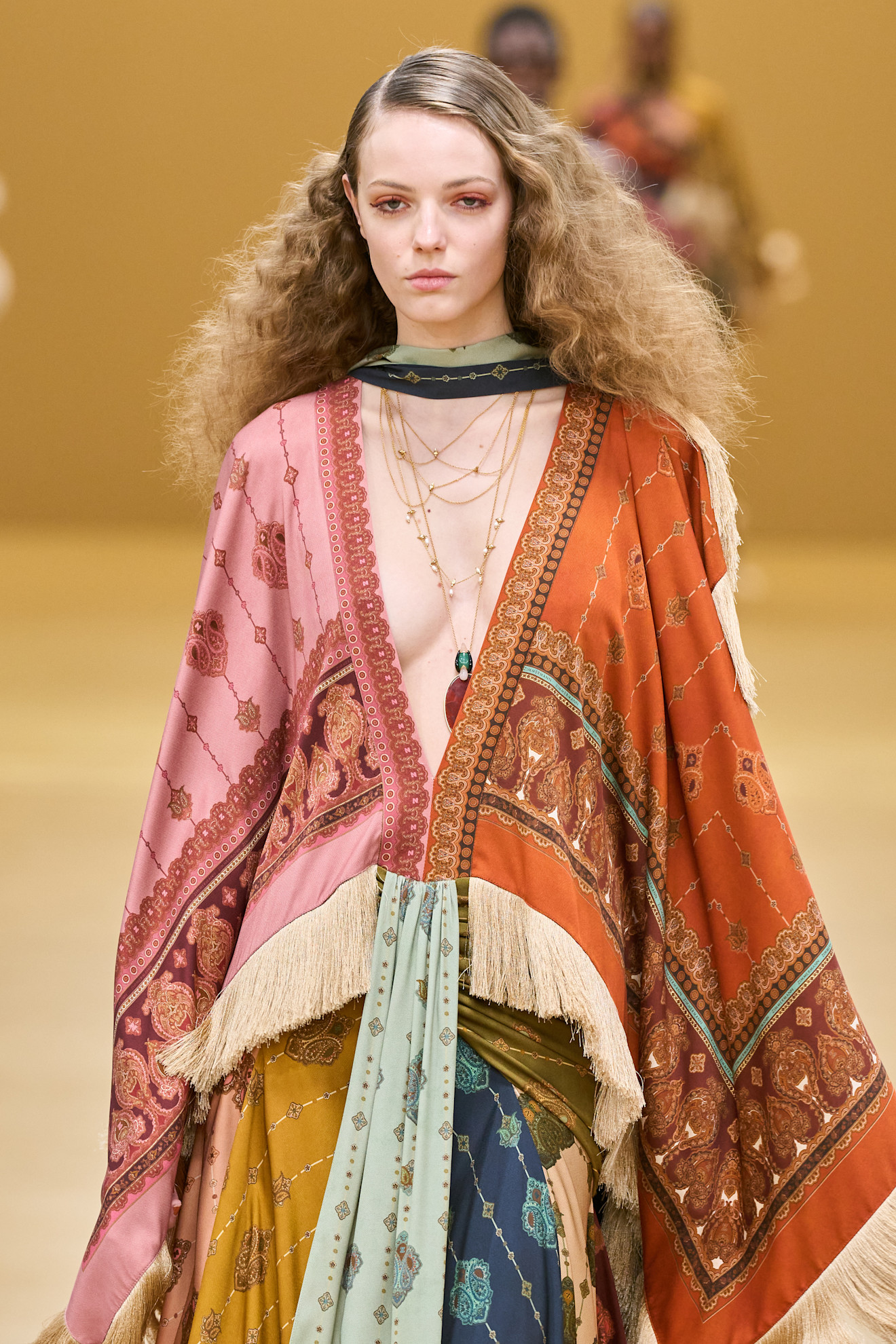 Halihazırda markanın imzası haline gelen zarif ve romantik ton; Sonbahar/Kış 2026 koleksiyonu için daha iddialı ve gösterişli bir dile evriliyor. Art deco esintilerini de kolaylıkla görebildiğimiz tasarımlarda, dikkat çekici desenler tüylerle, katlarla, farklı materyal seçimleriyle buluşuyor. Bu noktada Zimmermann kendi DNA'sına sadık kalarak ilham seviyesini yükseltiyor.